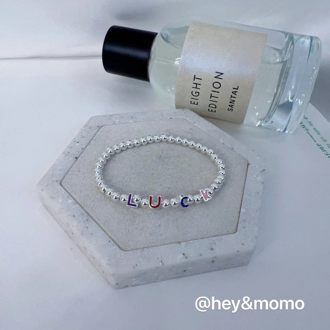 图款 ⚪️925银 双面彩釉字母LUCK 转运银珠珠弹力绳手链 21000