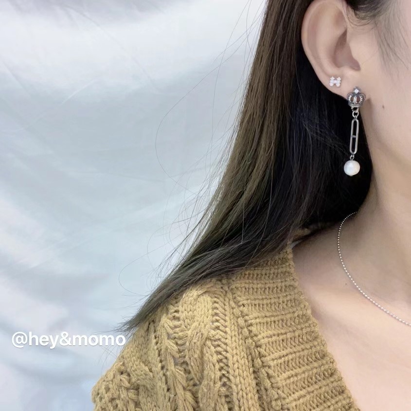 图款 ⚪️925银 小重工复古皇冠别针链珍珠吊坠耳饰 19000