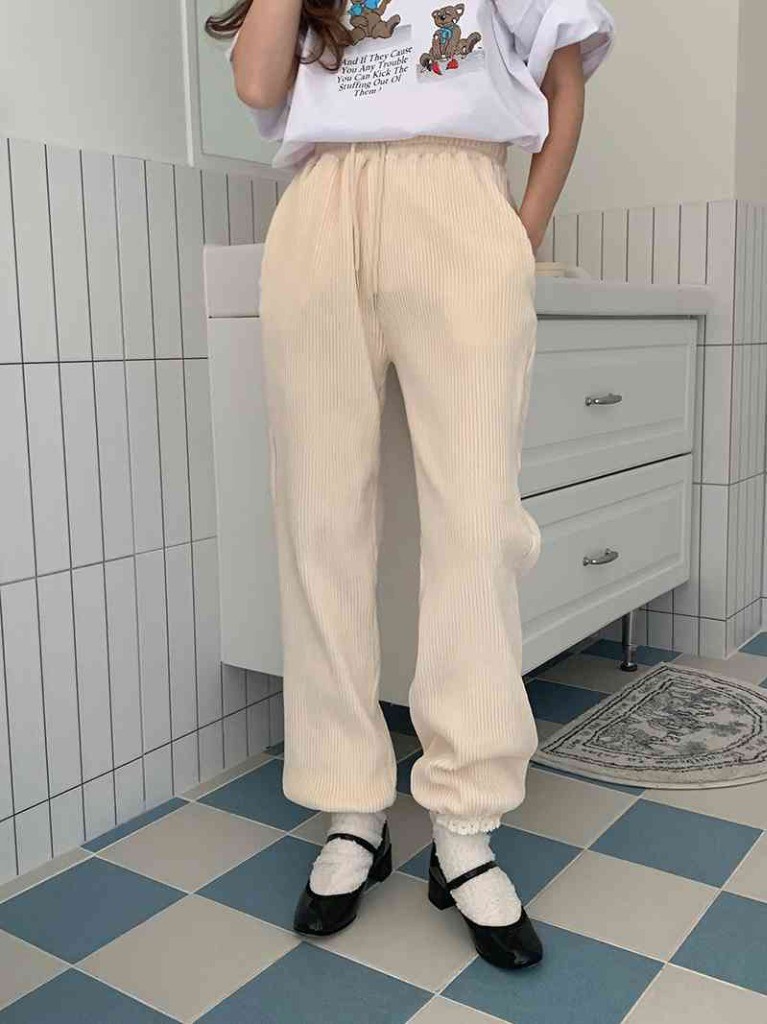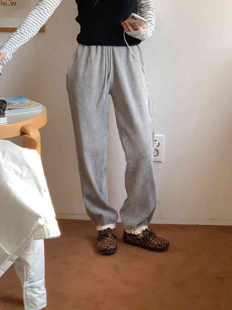 品名:벨로아레이스조거팬츠 ◎※☞颜色:그레이, 아이보리, 핑크 ◎※☞尺寸:FREE ◎※☞材质:纯棉 81%,스판 19% 翻译