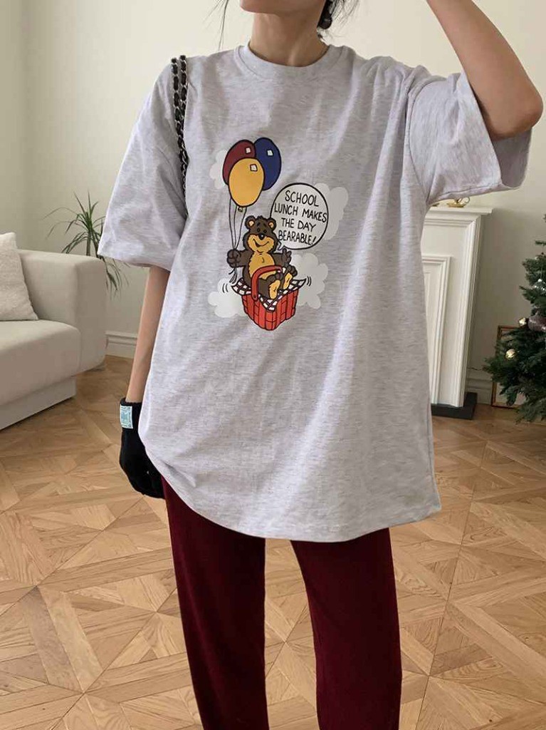 品名:풍선곰티셔츠 ◎※☞颜色:네이비, 백메란지, 소라 ◎※☞尺寸:FREE ◎※☞材质:纯棉 100% 翻译