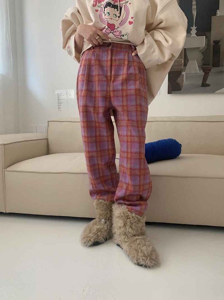 品名:타탄기모팬츠 ◎※☞颜色:보라, 아이보리 ◎※☞尺寸:M, S ◎※☞材质:聚酯 100% 翻译