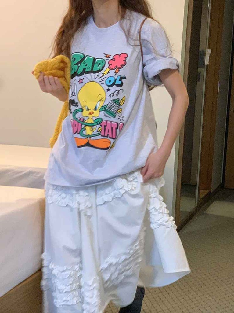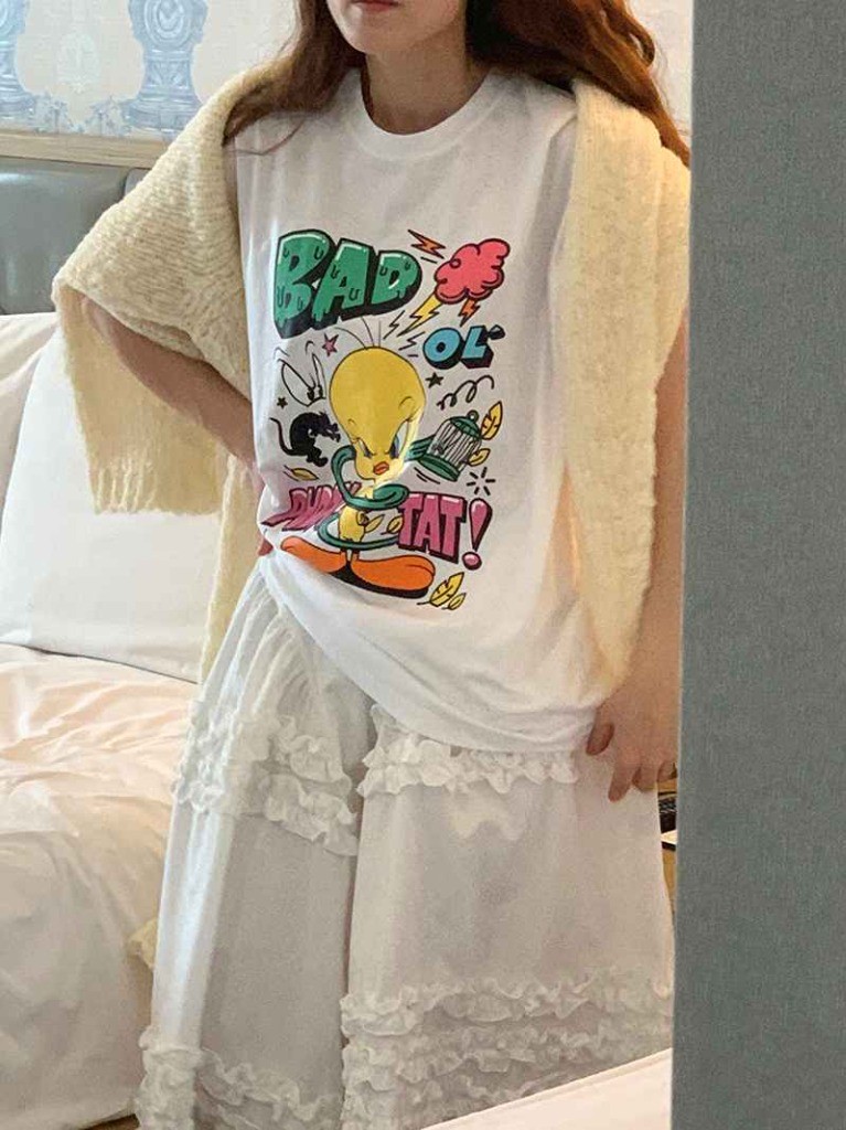 品名:루니튠즈) 배드티 ◎※☞颜色:백메란지, 블랙, 아이보리 ◎※☞尺寸:FREE ◎※☞材质:纯棉 100% 翻译