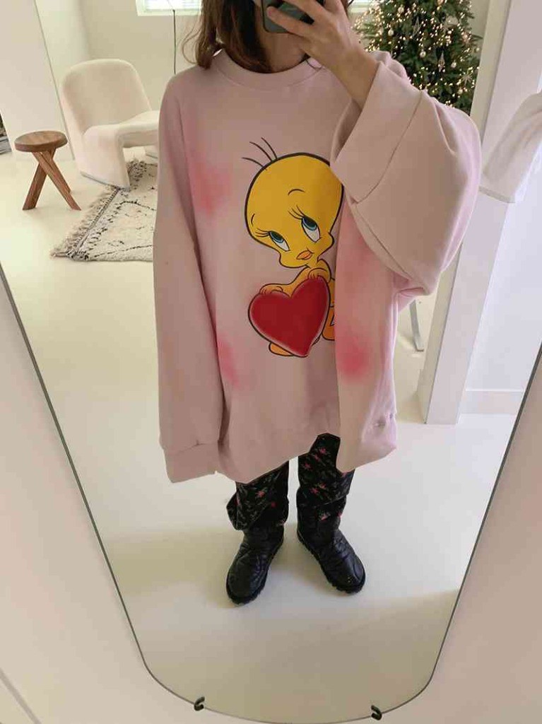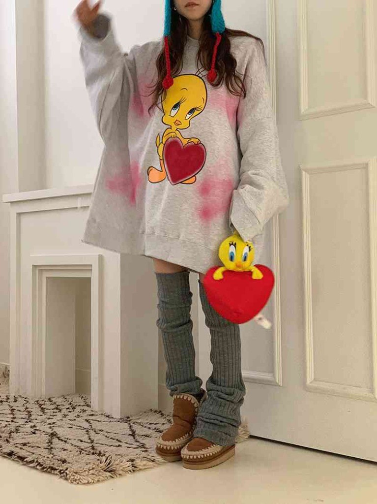 品名:루니튠즈) 러브브러쉬맨투맨 ◎※☞颜色:백메란지, 아이보리, 핑크 ◎※☞尺寸:FREE ◎※☞材质:纯棉 100% 翻译
