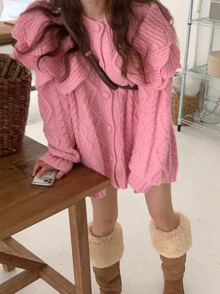 品名:프릴케이블가디건 ◎※☞颜色:아이보리, 핑크 ◎※☞尺寸:FREE ◎※☞材质:羊毛 50%,尼龙 50% 翻译