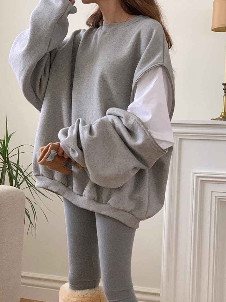 品名:지퍼맨투맨 ◎※☞颜色:그레이, 블랙, 아이보리 ◎※☞尺寸:FREE ◎※☞材质:纯棉 100% 翻译