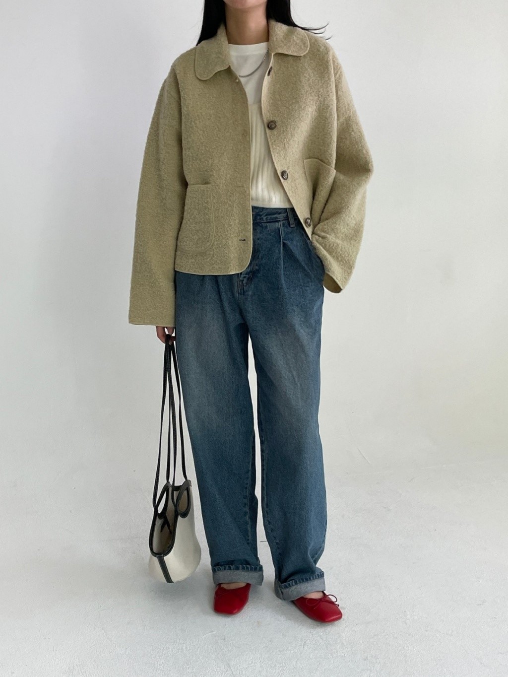 品名:플러피자켓 ◎※☞颜色:베이지, 블랙 ◎※☞尺寸:FREE ◎※☞材质:尼龙 20%,울 80% 翻译