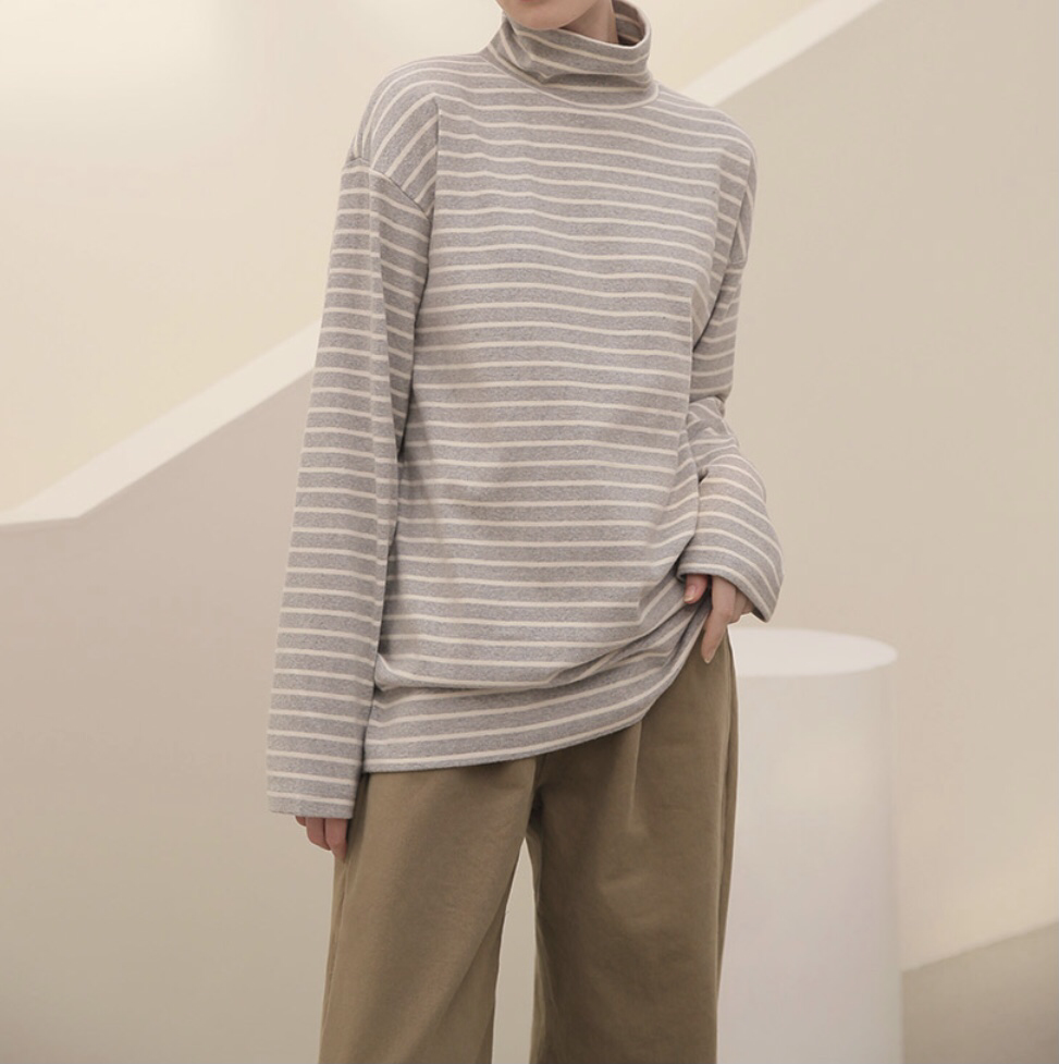 品名:빈츠 폴라 단가라 T ◎※☞颜色:그레이, 아이보리 ◎※☞尺寸:FREE ◎※☞材质:纯棉 100% 翻译