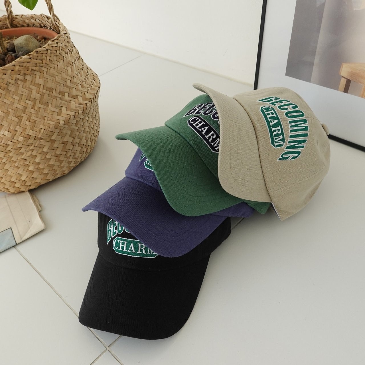 品名:신상 BC1098 비커밍 참 볼캡 ◎※☞颜色:그린, 네이비, 베이지, 블랙 ◎※☞尺寸:F ◎※☞材质:纯棉 100% 翻译