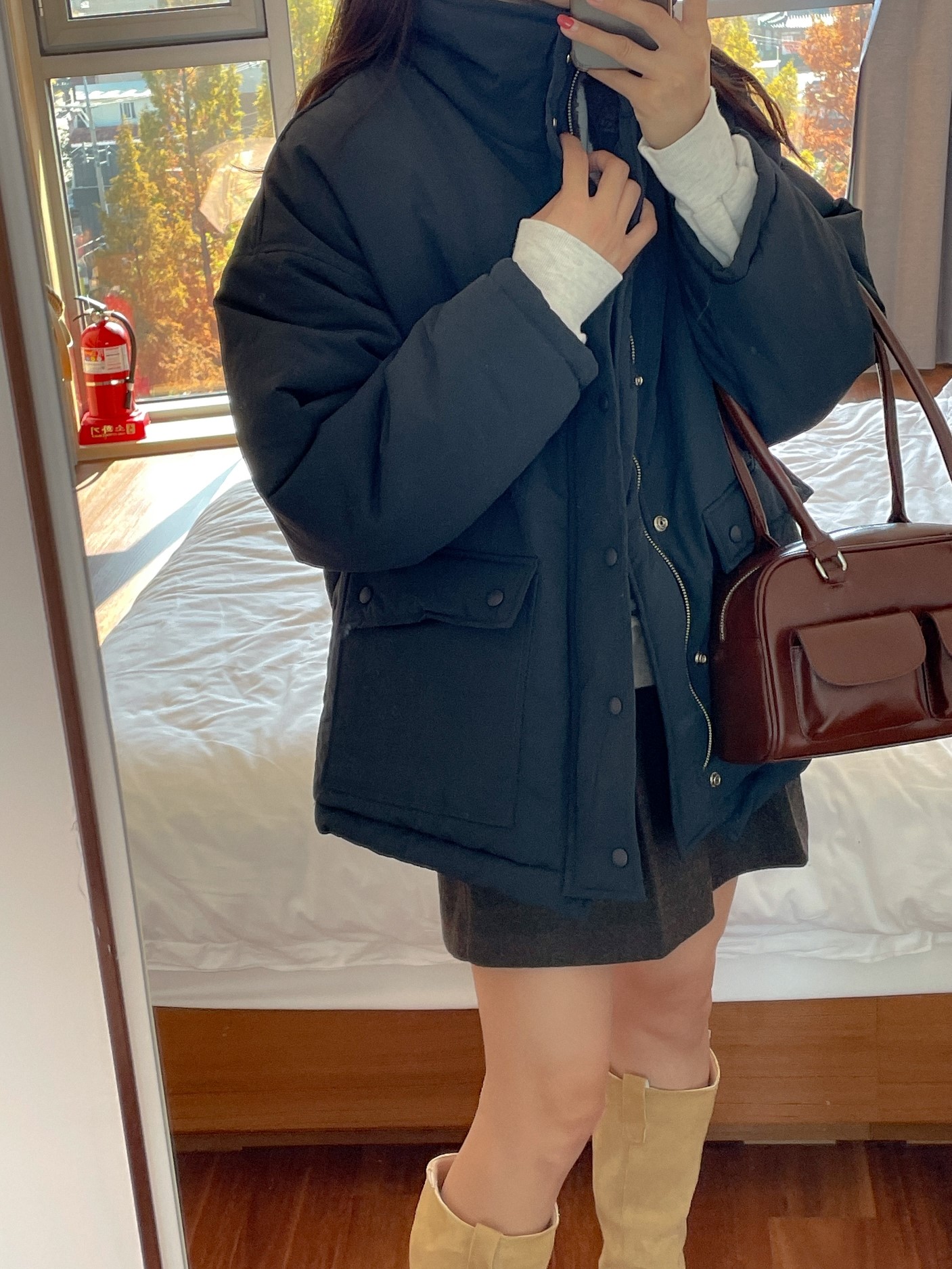 品名:파우더PD #털안감 #패딩 ◎※☞颜色:네이비, 베이지 ◎※☞尺寸:FREE ◎※☞材质:尼龙 100% 翻译
