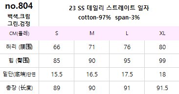品名:봄신상 804 허리밴딩 스판 일자 팬츠 면바지 기본 pt ◎※☞颜色:그린, 블랙, 크림, 화이트 ◎※☞尺寸:L, M, S, XL ◎※☞材质:纯棉 97%,스판 3% ◎※☞注意事项:只能干洗,只能手洗,不能手洗,机洗,不能使用漂白剂,不能烘干,不能熨烫,不能曲折