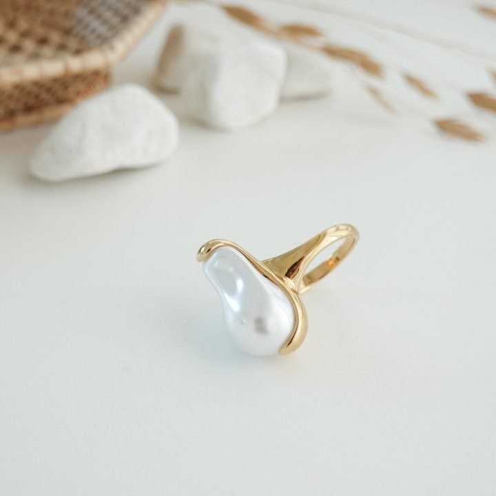 品名:R1311 진주 반지 ◎※☞颜色:골드 ◎※☞尺寸:FREE ◎※☞材质:镀金 0% 翻译