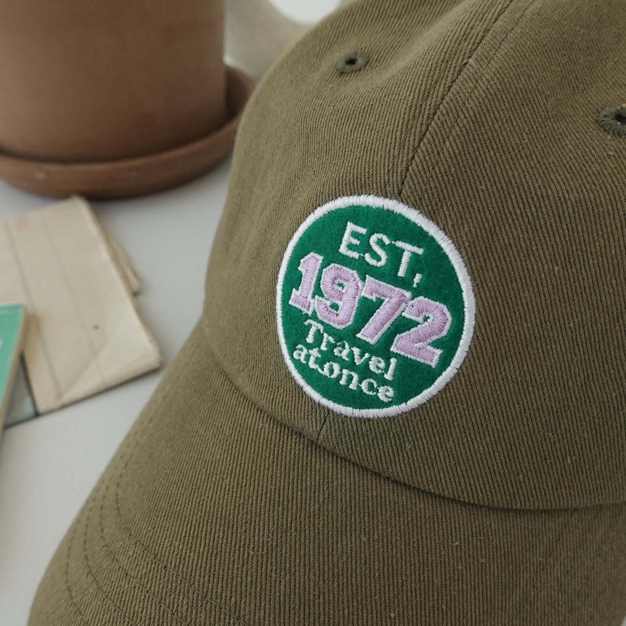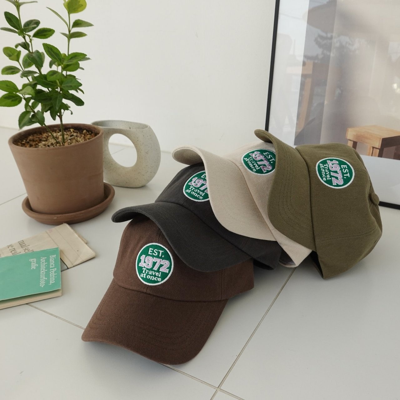 品名:신상 BC1094 EST 1972 패치 볼캡 ◎※☞颜色:브라운, 아이보리, 차콜, 카키 ◎※☞尺寸:F ◎※☞材质:纯棉 100% 翻译