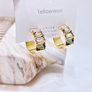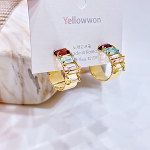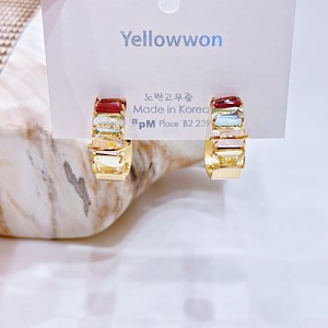 耳圈 银针 施华洛世奇水晶 方形 透明 拼色 两个颜色