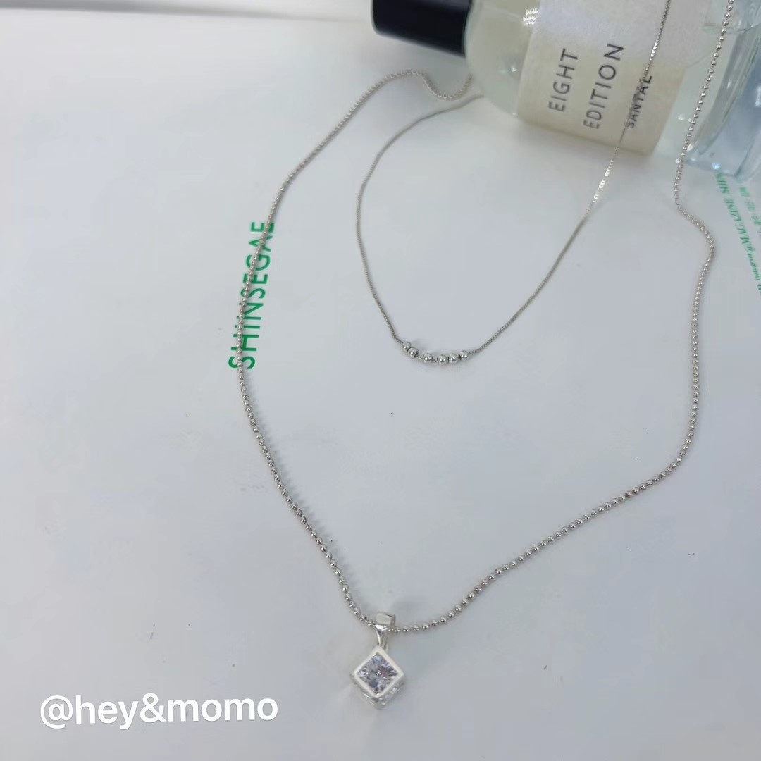 图款 ⚪️925银 蛇骨链 转运银球➕珠珠链超闪单钻吊饰 双层毛衣链 34000