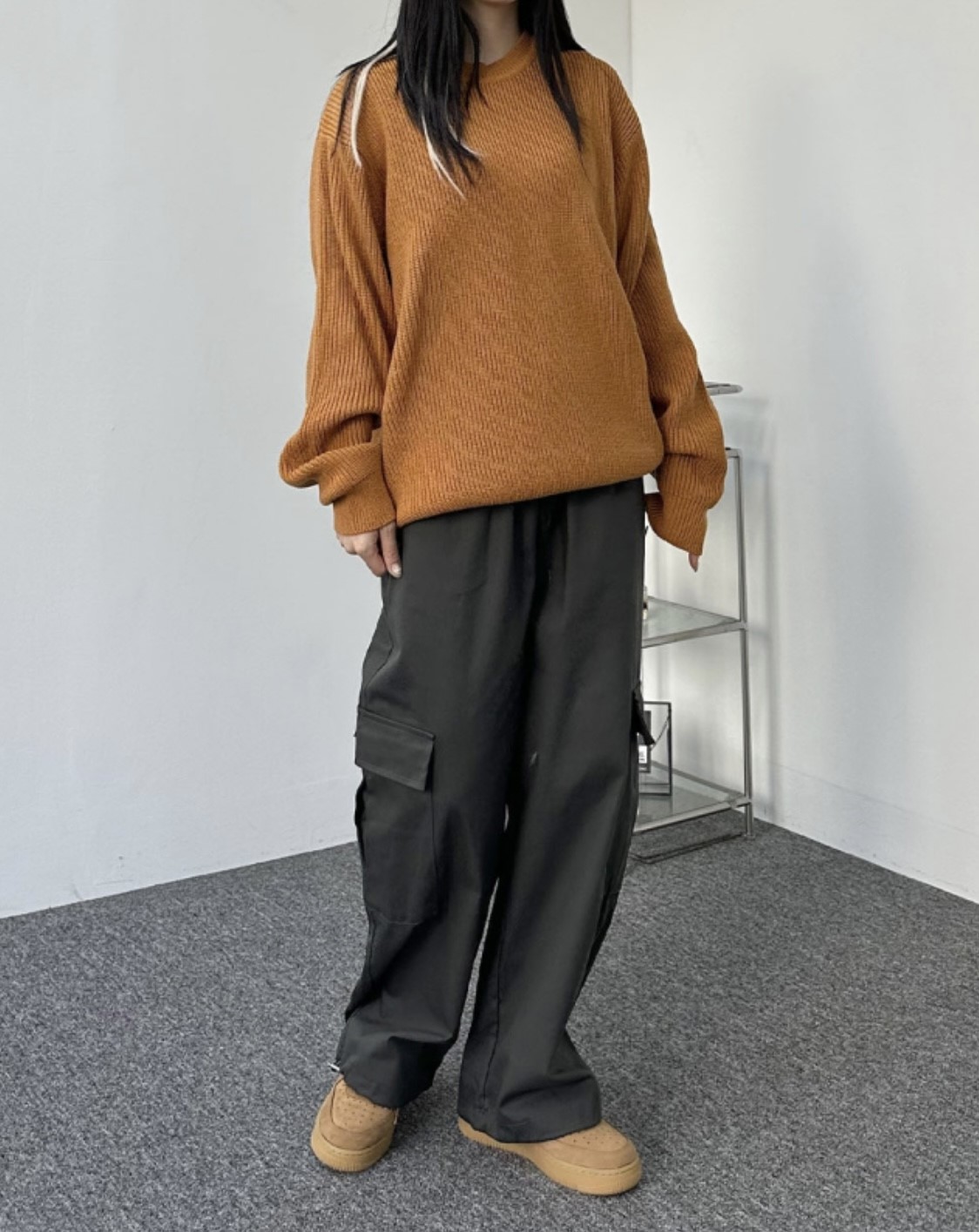 品名:베이직오버니트 ◎※☞颜色:그레이, 베이지, 블랙, 오렌지, 챠콜 ◎※☞尺寸:FREE ◎※☞材质:腈纶 100% 翻译