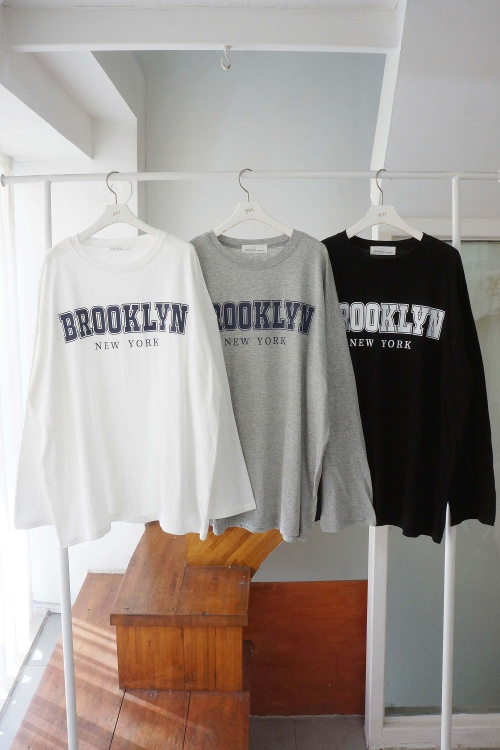 品名:D5)뉴욕티 #봄신상 ◎※☞颜色:그레이, 블랙, 아이보리 ◎※☞尺寸:FREE ◎※☞材质:纯棉 100% 翻译