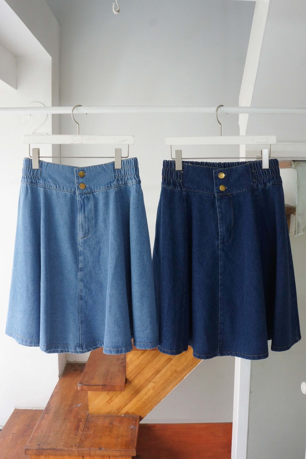 品名:J1)투단추청미니SK #봄신상 ◎※☞颜色:연청, 진청 ◎※☞尺寸:FREE ◎※☞材质:聚氨酯 3%,纯棉 97% 翻译