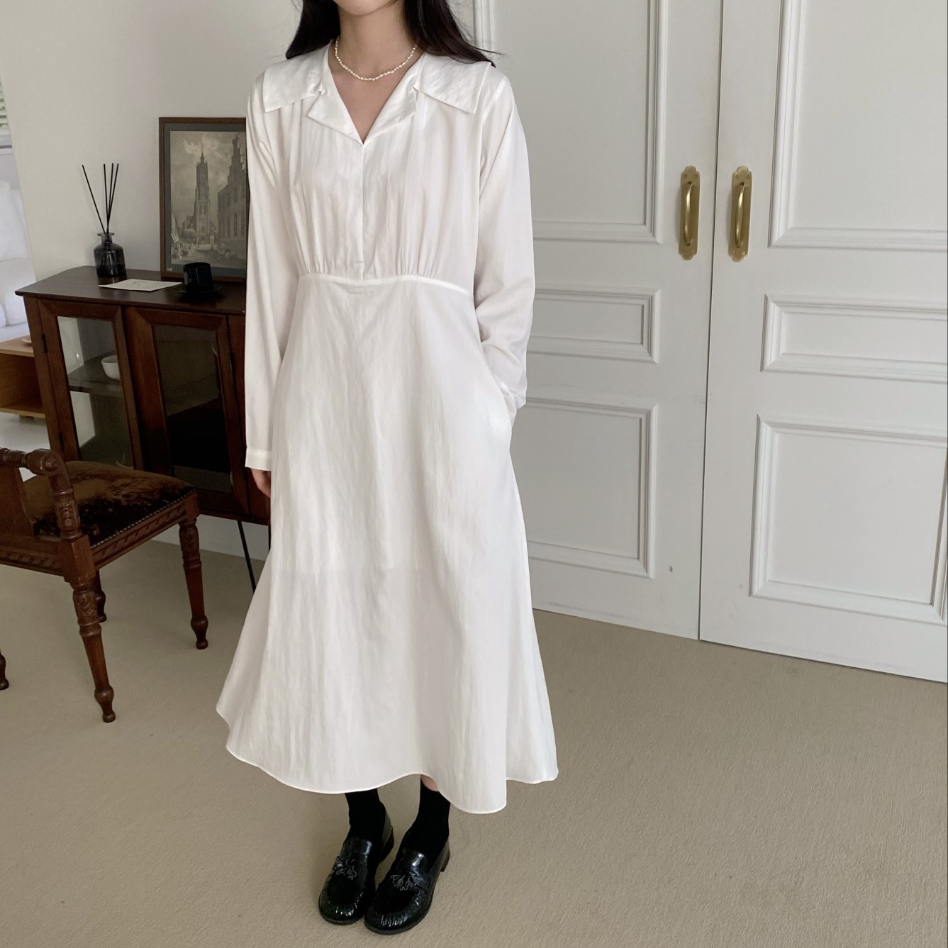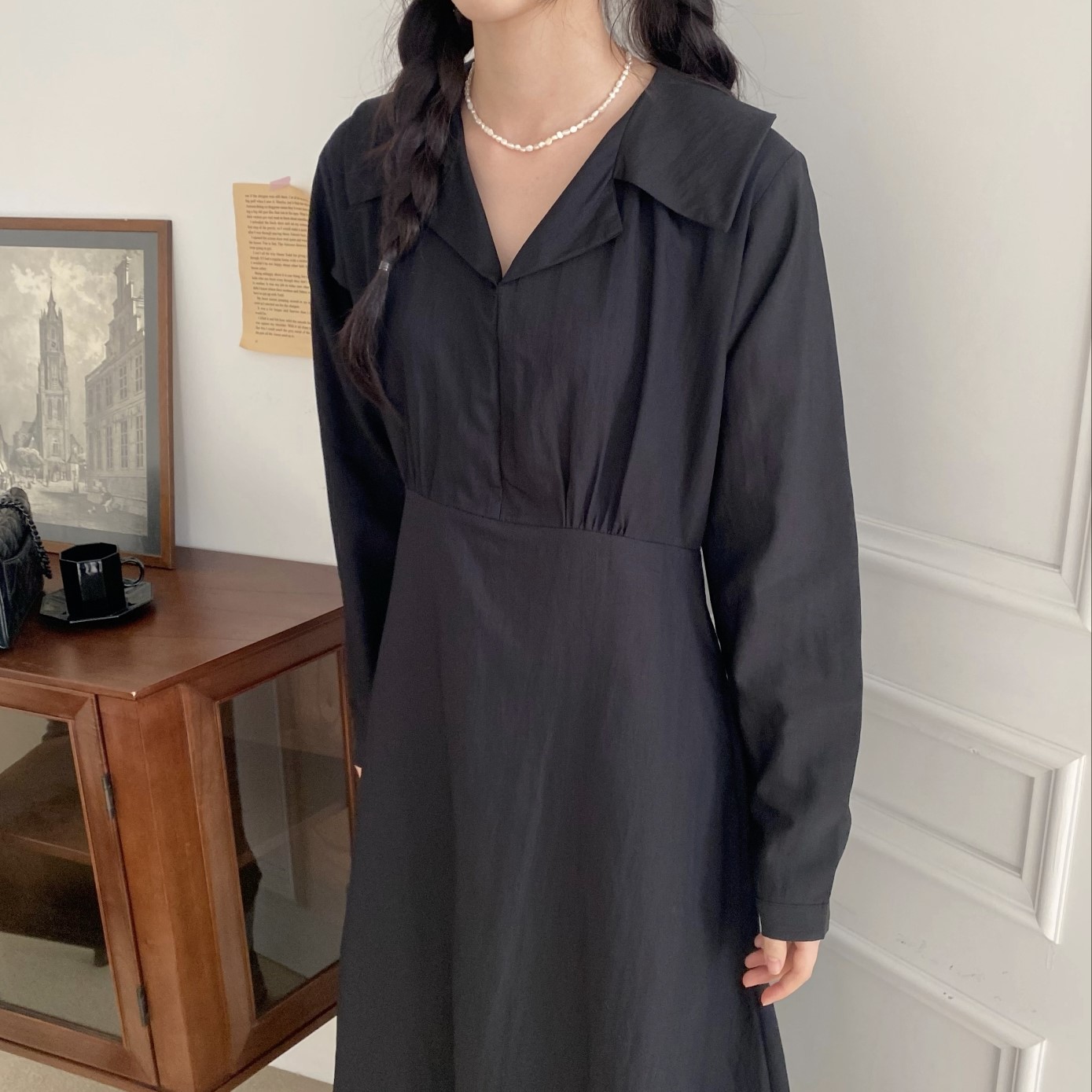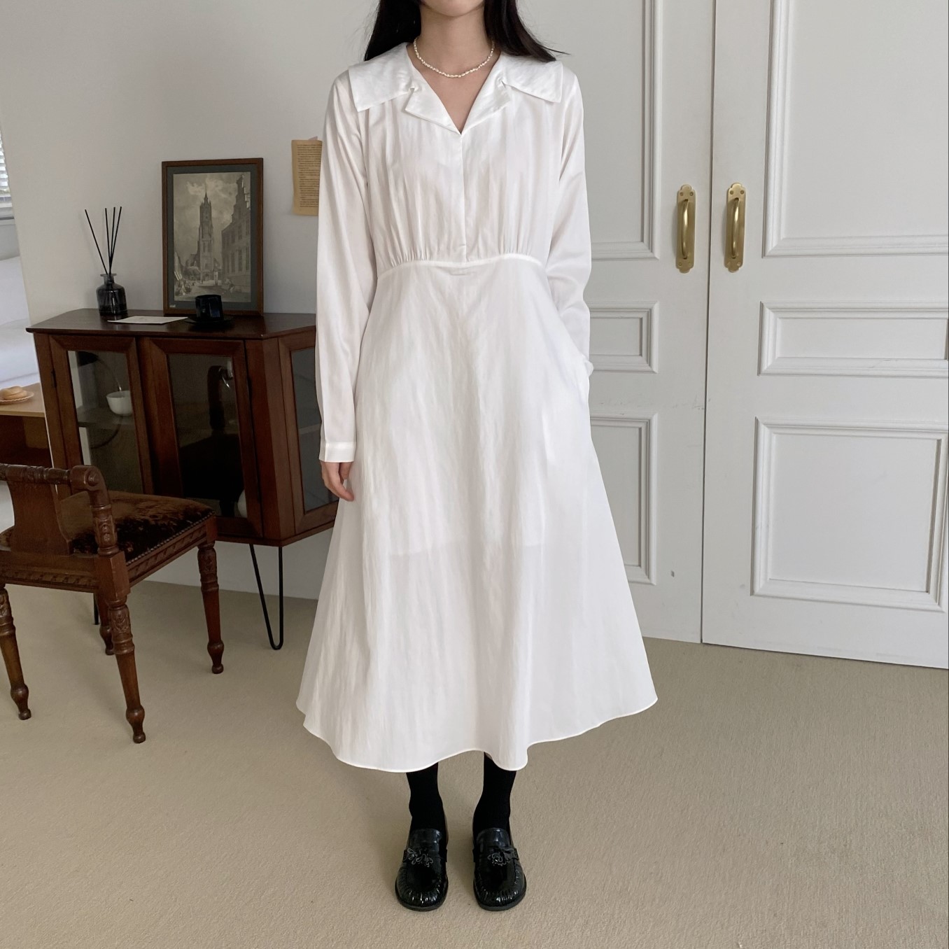 品名:로에원피스 #봄신상 ◎※☞颜色:블랙, 화이트 ◎※☞尺寸:FREE ◎※☞材质:尼龙 30%,人造纤维 70% 翻译