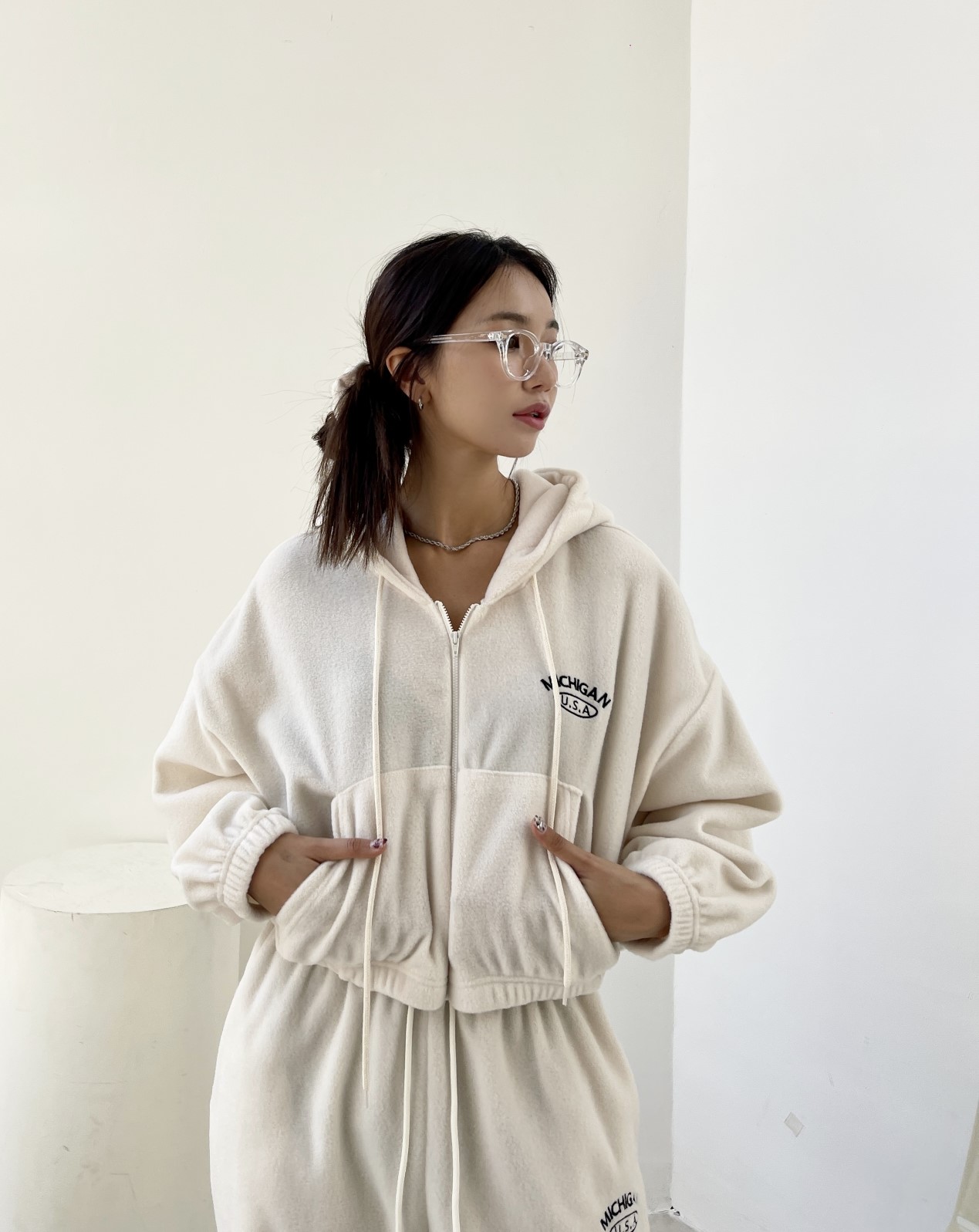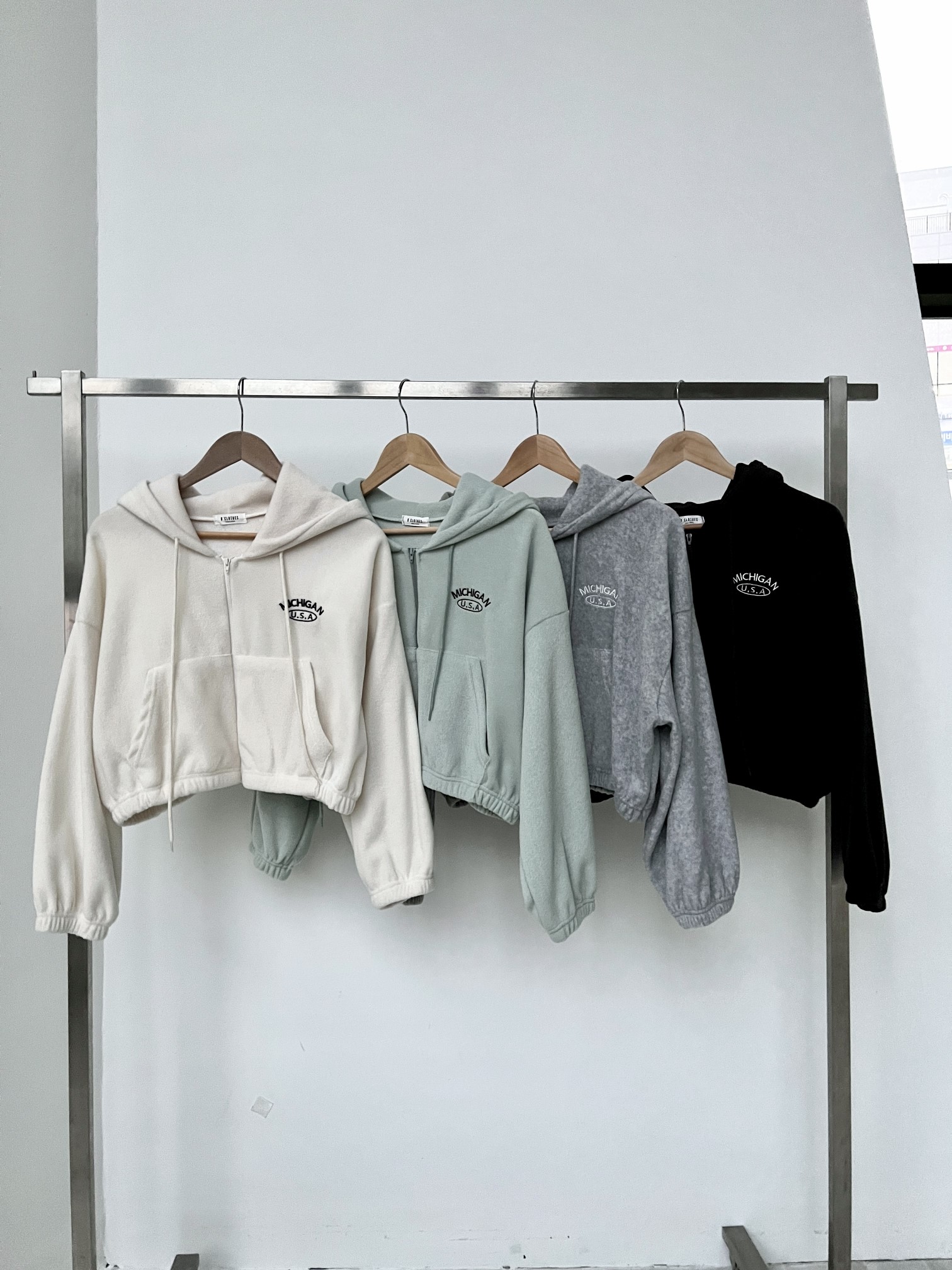 品名:미시간후드(기모) ◎※☞颜色:그레이, 민트, 블랙, 크림 ◎※☞尺寸:FREE ◎※☞材质:聚酯 100% 翻译