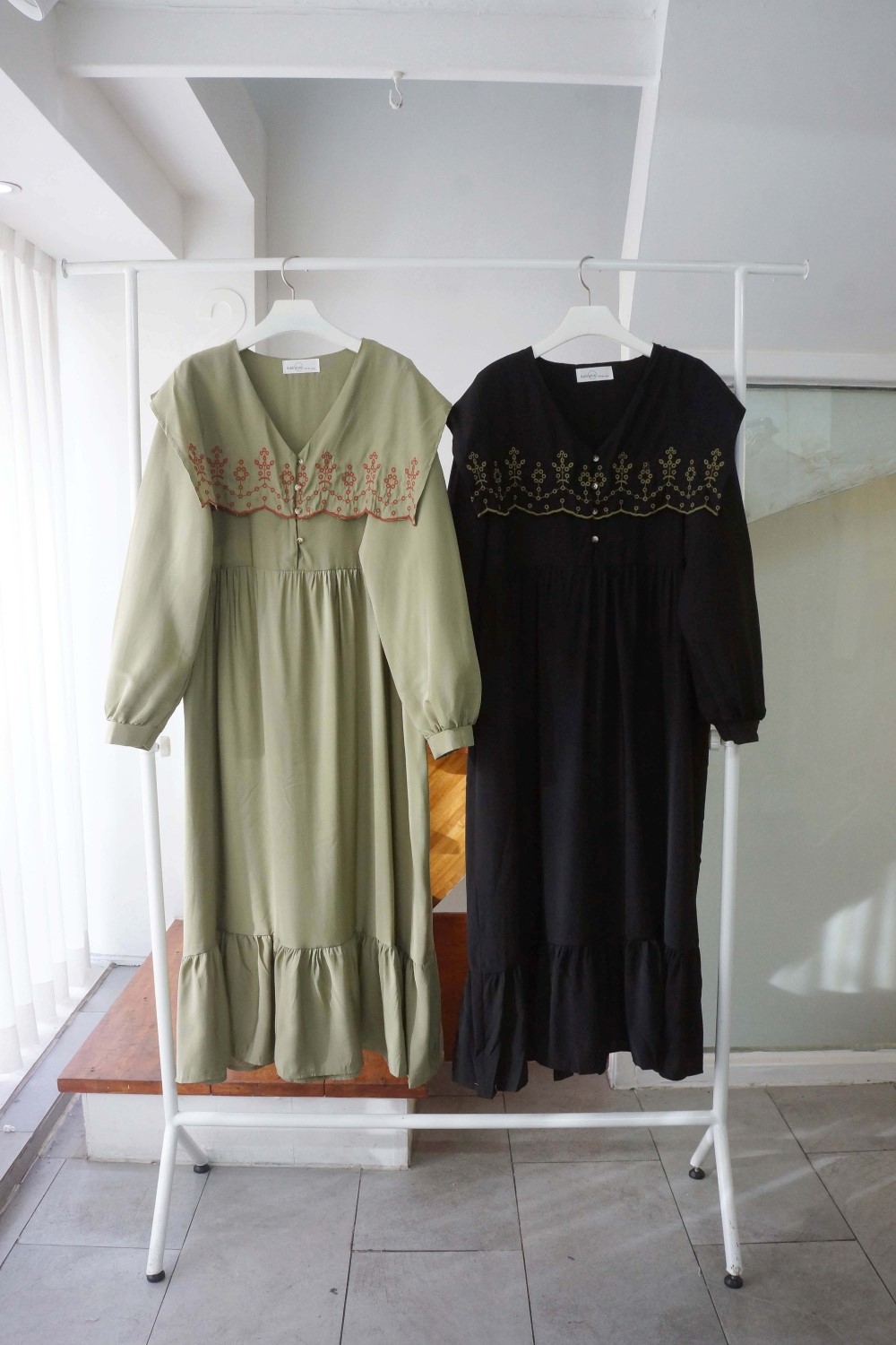 品名:D5) 자수세라OPS #봄신상 ◎※☞颜色:블랙, 카키 ◎※☞尺寸:FREE ◎※☞材质:纯棉 60%,人造纤维 40% 翻译