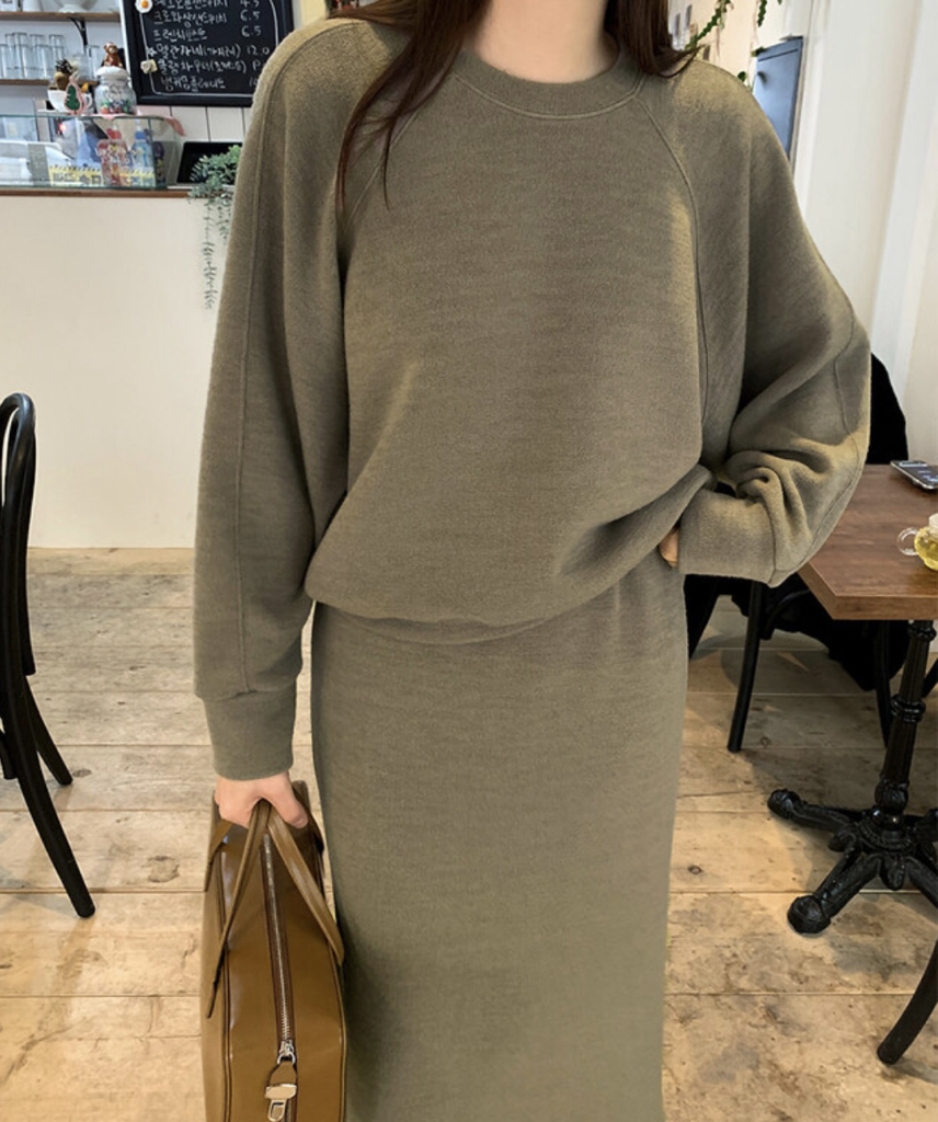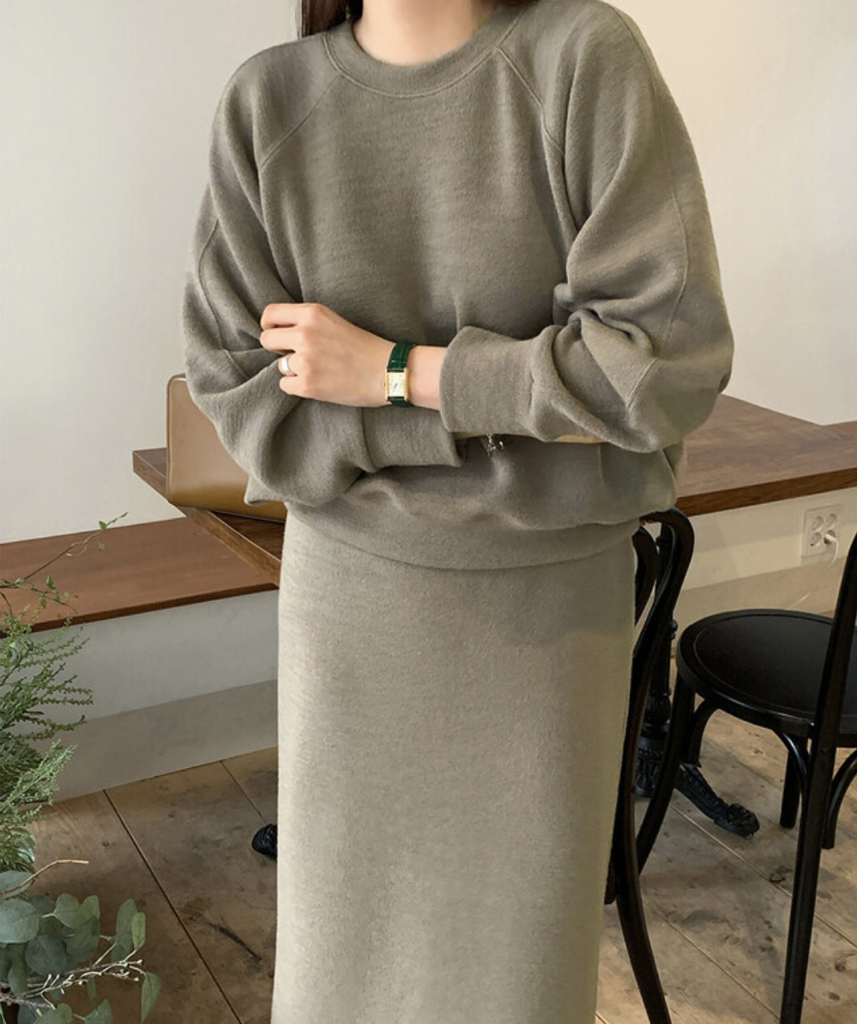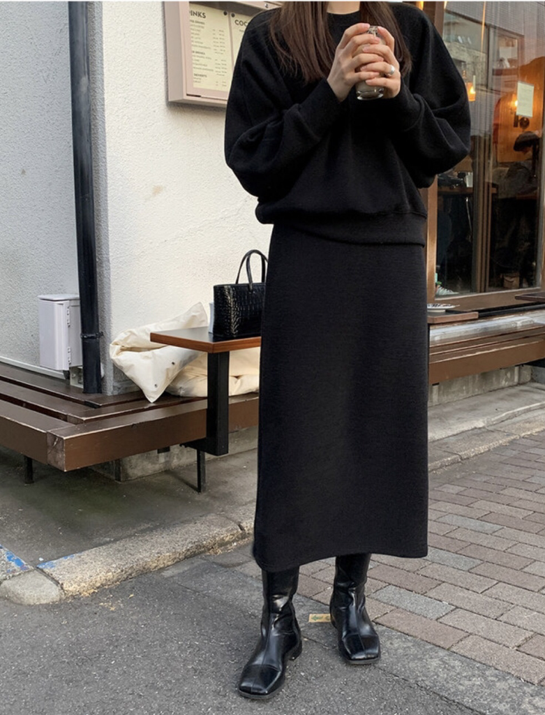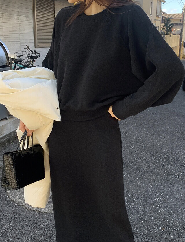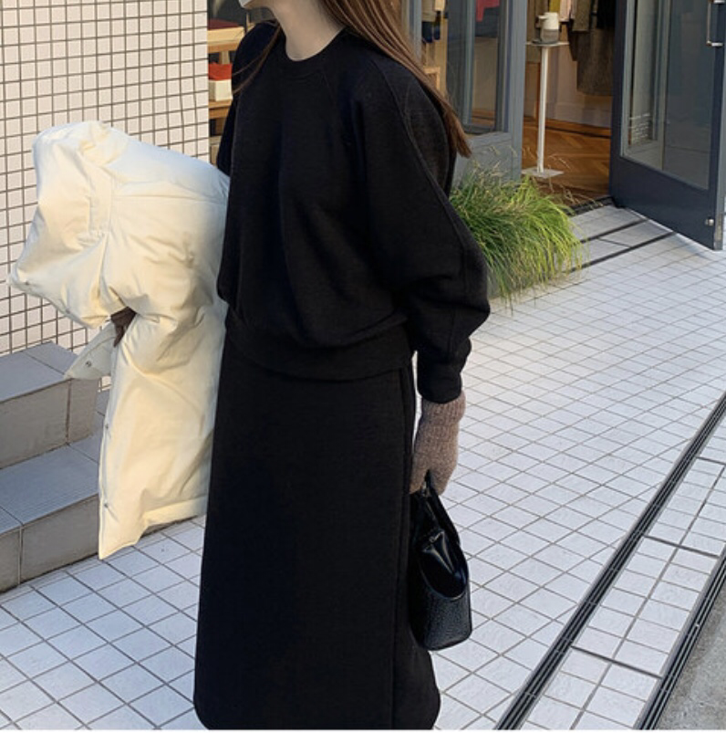 品名:니트 셋업 /나그랑 맨투맨 밴딩 스커트 ◎※☞颜色:블랙, 카키베이지 ◎※☞尺寸:FREE ◎※☞材质:人造纤维 17%,聚酯 79%,스판 4% 翻译