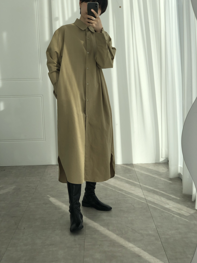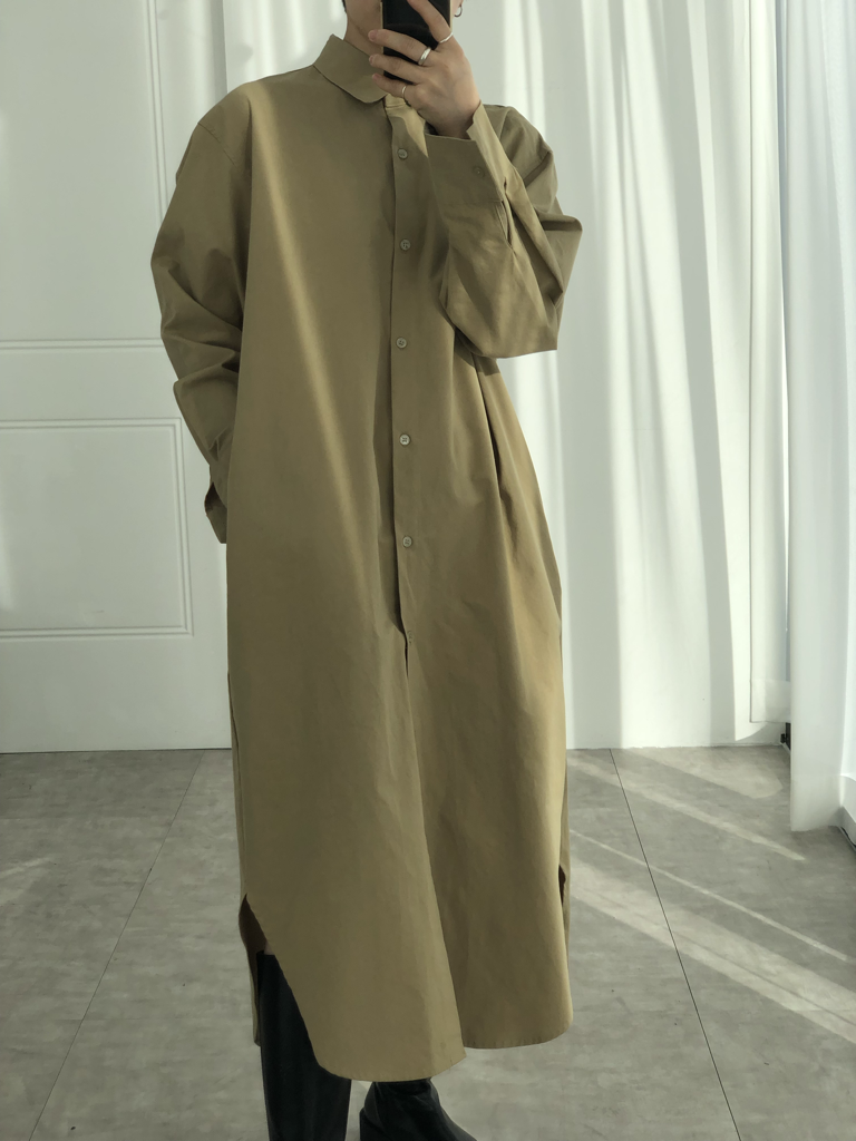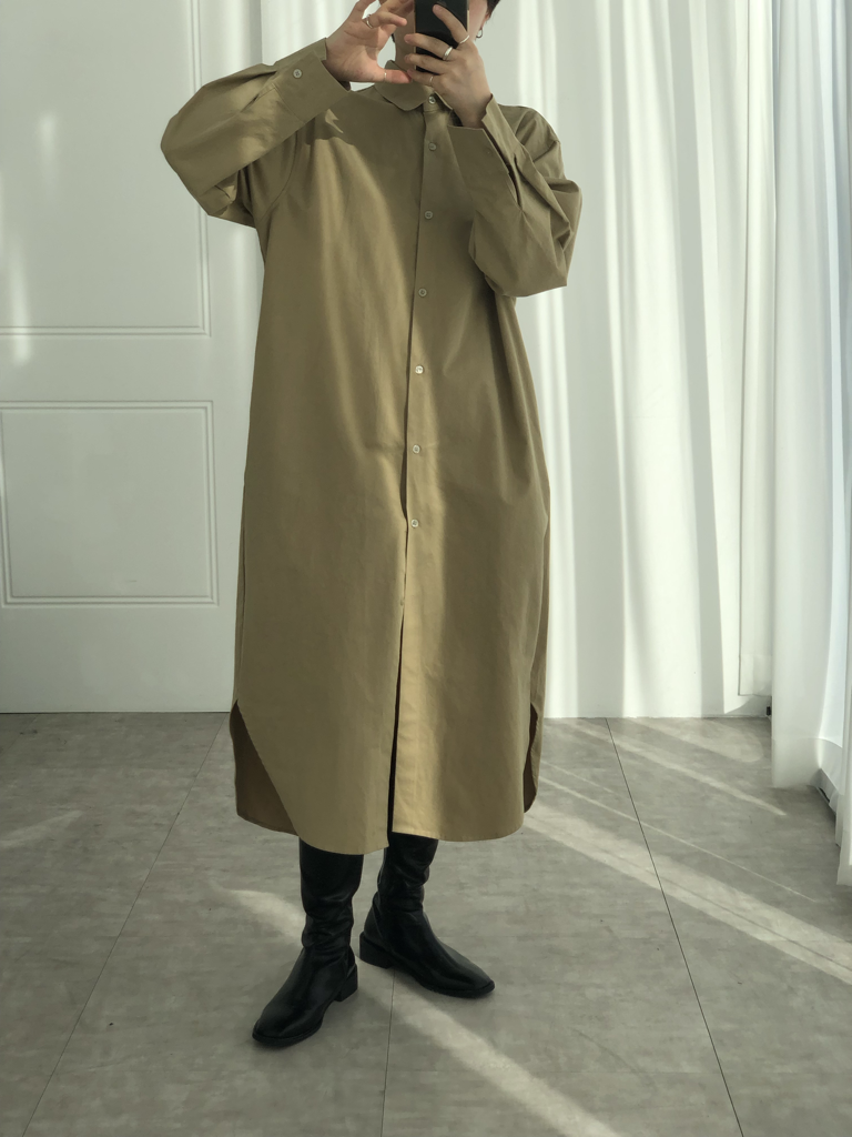 品名:모던 셔츠롱 원피스 ◎※☞颜色:베이지, 아이 ◎※☞尺寸:FREE ◎※☞材质:纯棉 100% 翻译