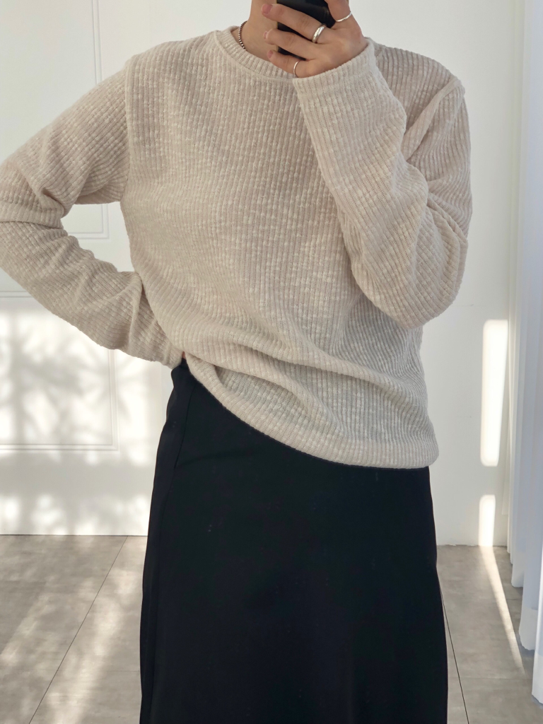 品名:23SS 봄신상 슬러브 니트 티 ◎※☞颜色:베이지, 블랙, 아이 ◎※☞尺寸:FREE ◎※☞材质:聚酯 77%,人造纤维 20%,스판 3% 翻译