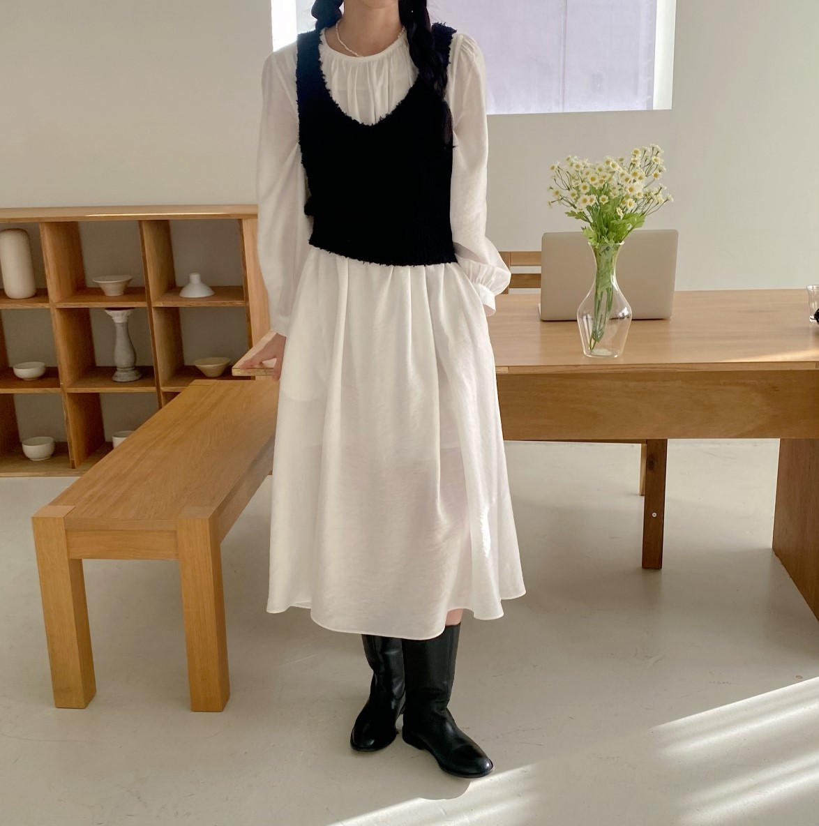 品名:로시원피스 #봄신상 ◎※☞颜色:블랙, 화이트 ◎※☞尺寸:FREE ◎※☞材质:尼龙 19%,人造纤维 81% 翻译