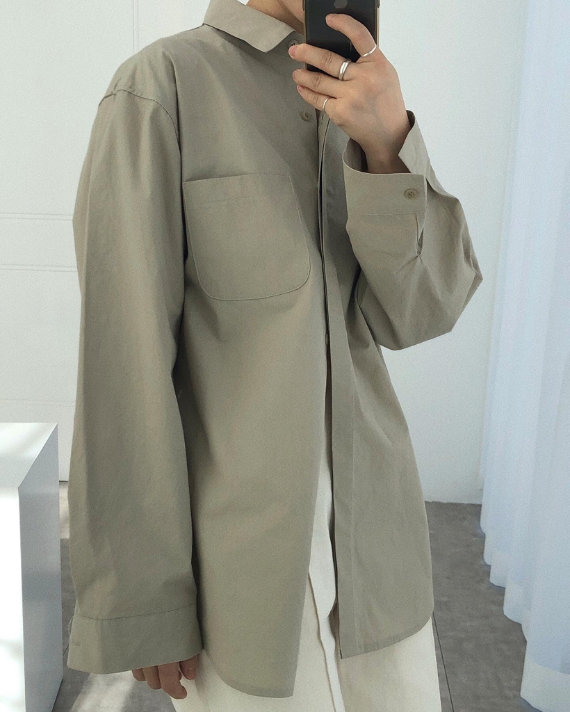 品名:마일 히든 포켓 셔츠 ◎※☞颜色:딥네이비, 베이지 ◎※☞尺寸:FREE ◎※☞材质:纯棉 100% 翻译