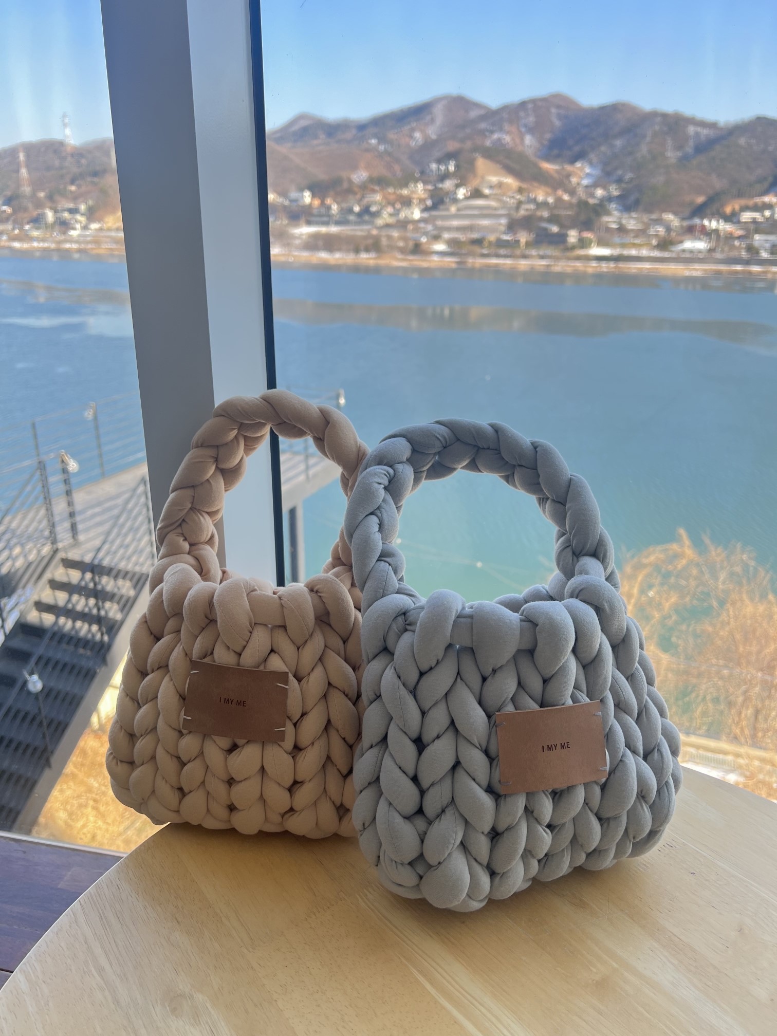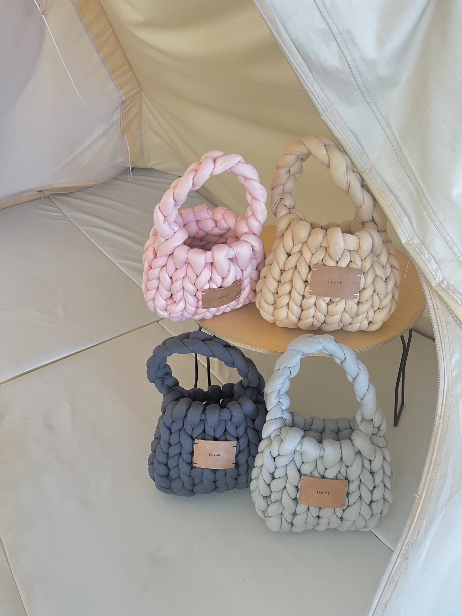 品名:자이언트얀BAG #도트백 #뜨개 ◎※☞颜色:그레이, 먹색, 베이지, 핑크 ◎※☞尺寸:F ◎※☞材质:纯棉 100% 翻译