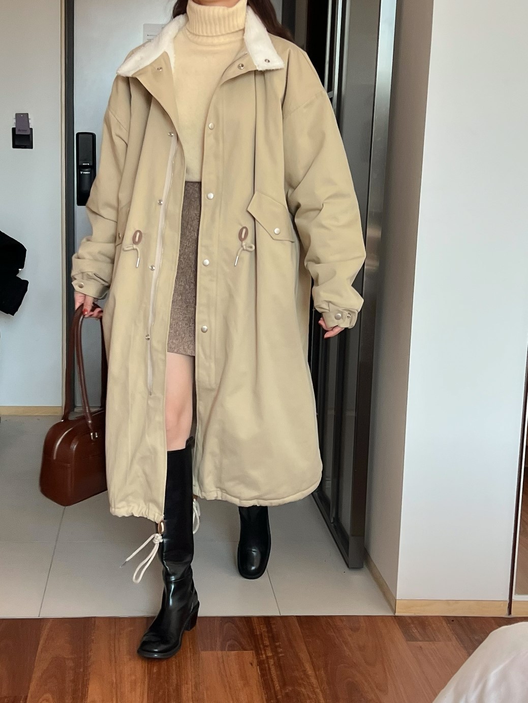 品名:퍼인터벌패딩JP #롱야상 #패딩 ◎※☞颜色:먹색, 베이지 ◎※☞尺寸:FREE ◎※☞材质:纯棉 100% 翻译