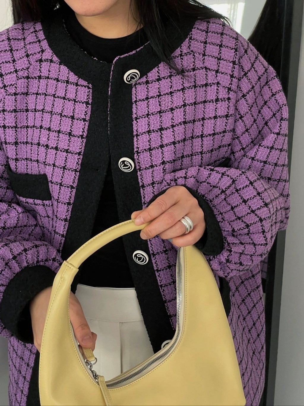 品名:토르티jk ◎※☞颜色:보라, 아이보리 ◎※☞尺寸:FREE ◎※☞材质:纯棉 100% 翻译