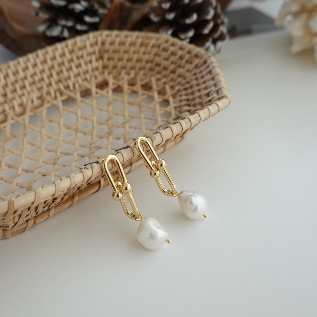 品名:E1943 담수진주 귀걸이 ◎※☞颜色:골드 ◎※☞尺寸:FREE ◎※☞材质:镀金 0% 翻译