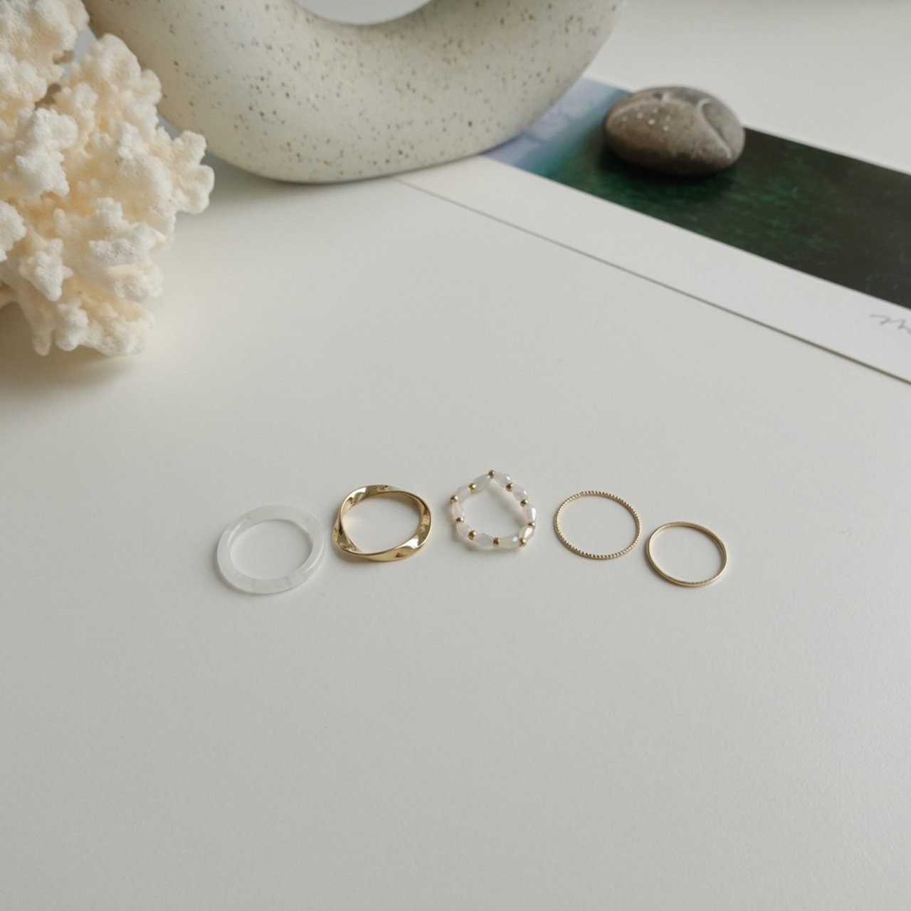 品名:R1340 반지 세트 ◎※☞颜色:블랙, 카키, 화이트 ◎※☞尺寸:FREE ◎※☞材质:镀金 0% 翻译