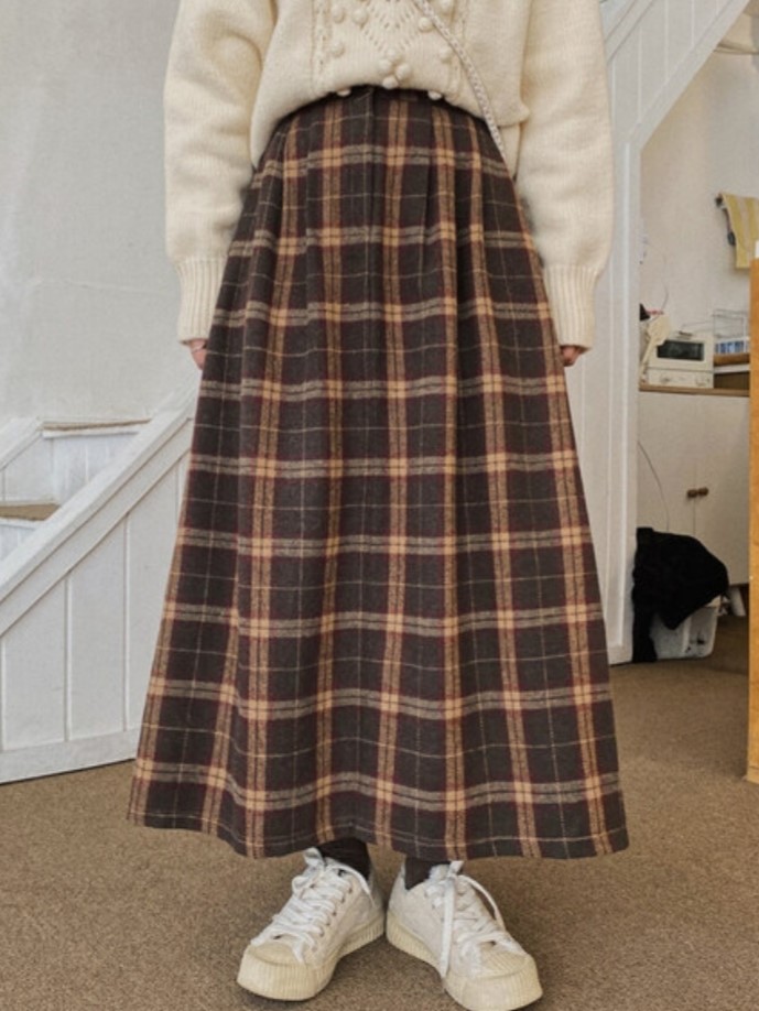 品名:复古格纹羊毛混纺半身A字长裙 ◎※☞颜色:그린, 네이비, 브라운 ◎※☞尺寸:FREE ◎※☞材质:聚酯 50%,人造纤维 20%,羊毛 30% ◎※☞注意事项:只能干洗,只能手洗,不能手洗,机洗,不能使用漂白剂,不能烘干,不能熨烫,不能曲折