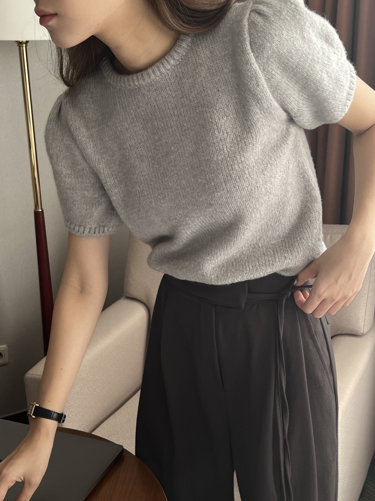 品名:에어울니트 ◎※☞颜色:그레이, 브라운, 아이보리 ◎※☞尺寸:FREE ◎※☞材质:腈纶 41%,聚酯 54%,羊毛 5% ◎※☞注意事项:只能干洗,只能手洗,不能手洗,机洗,不能使用漂白剂,不能烘干,不能熨烫,不能曲折