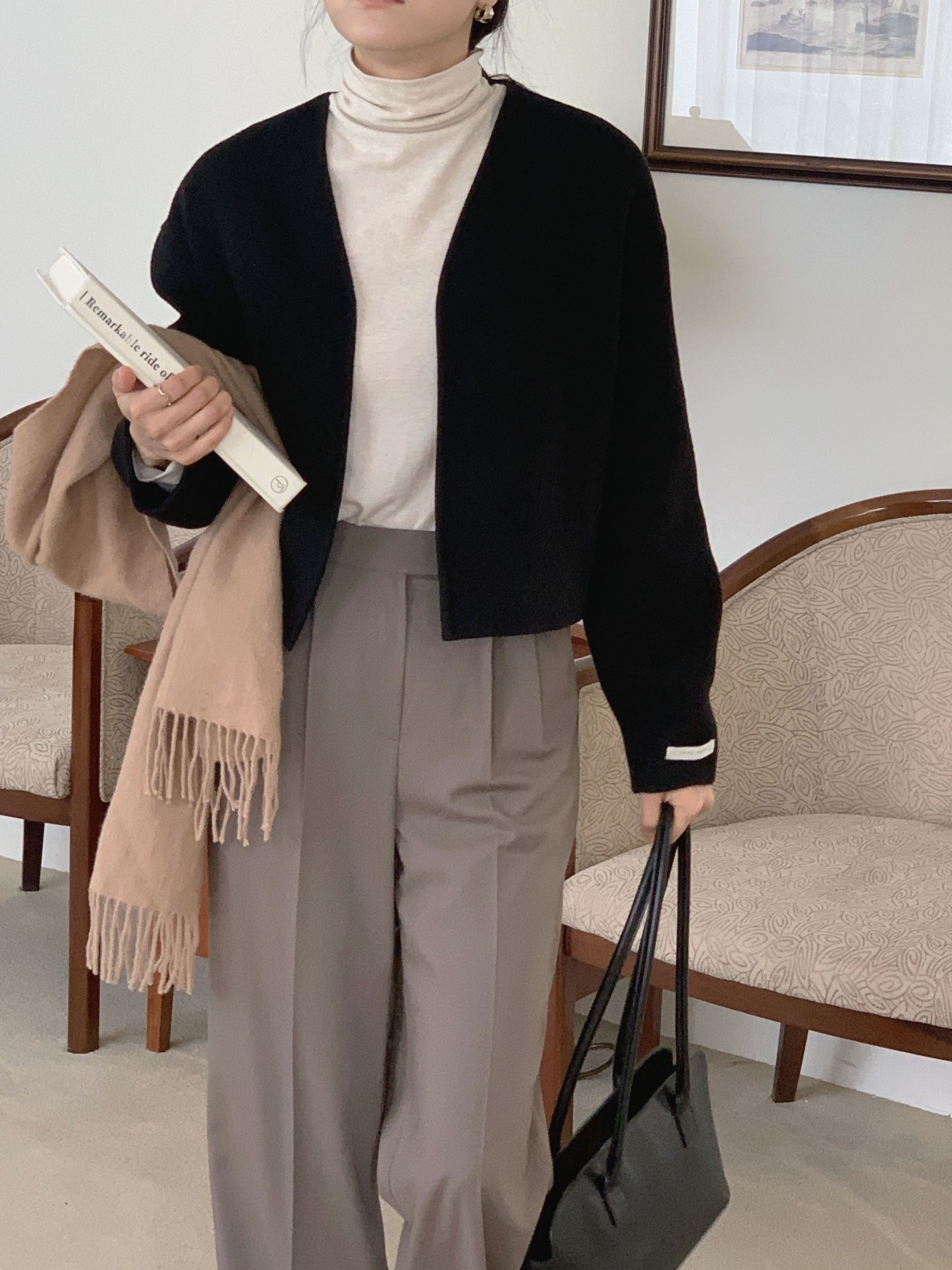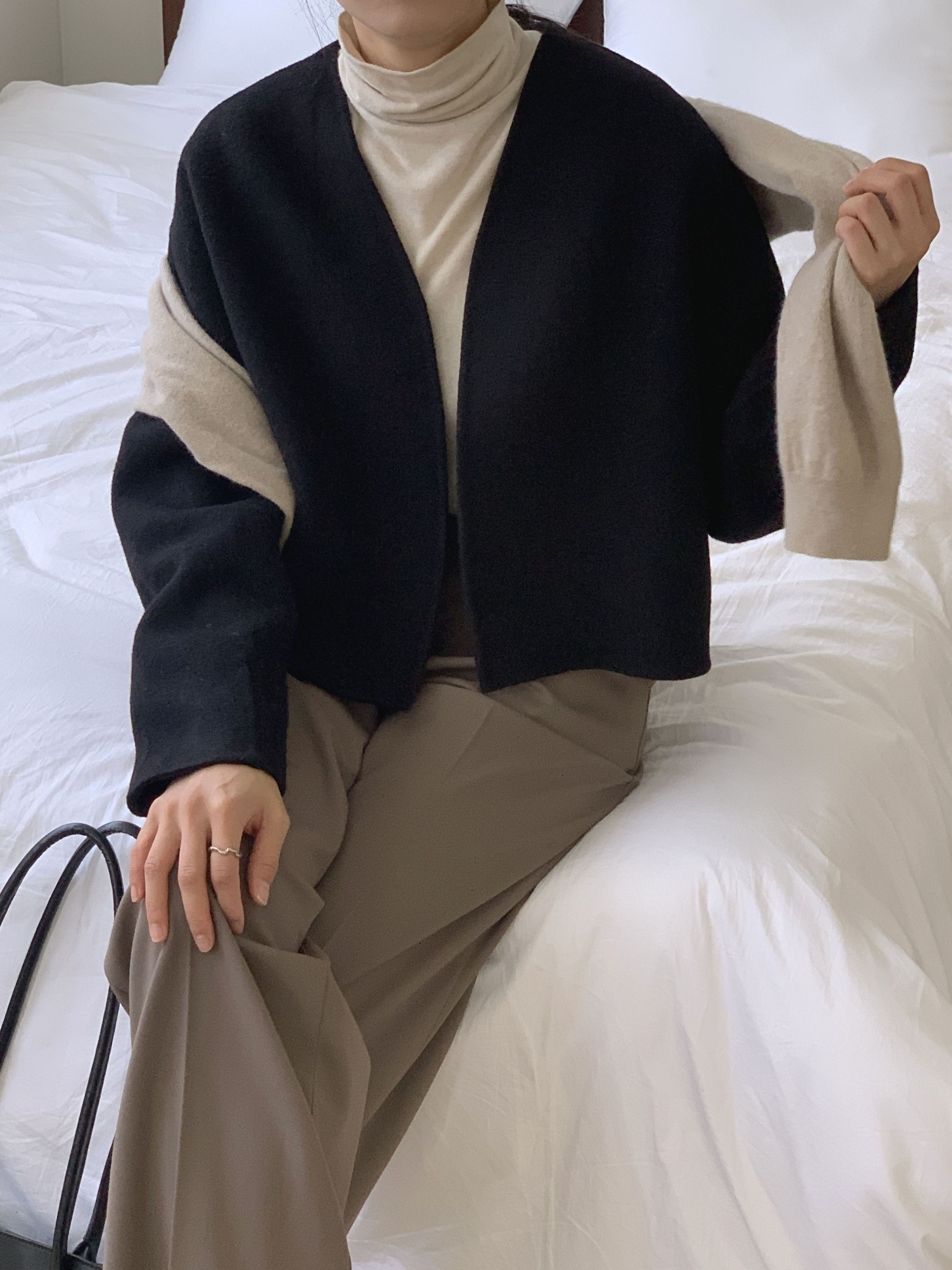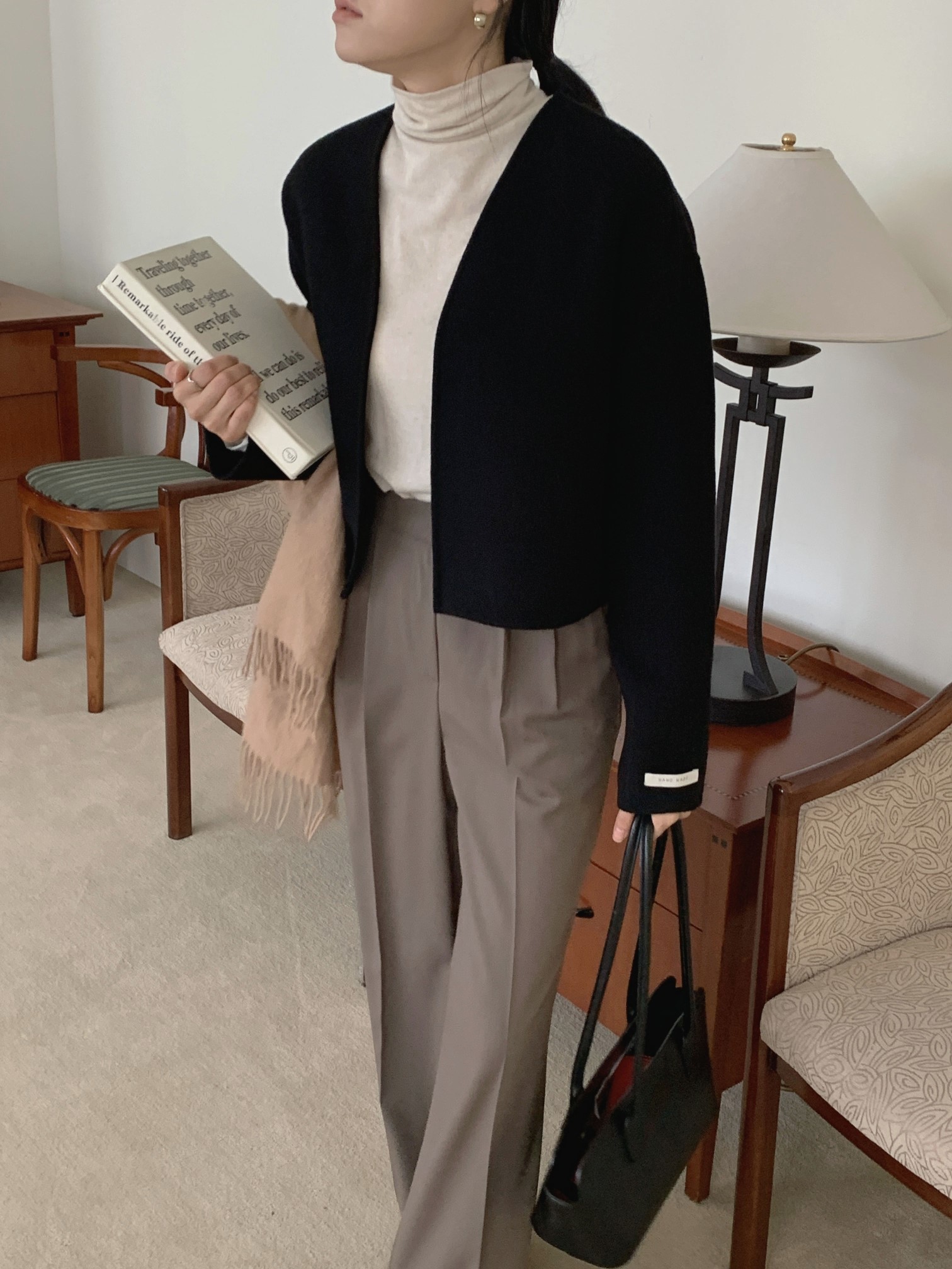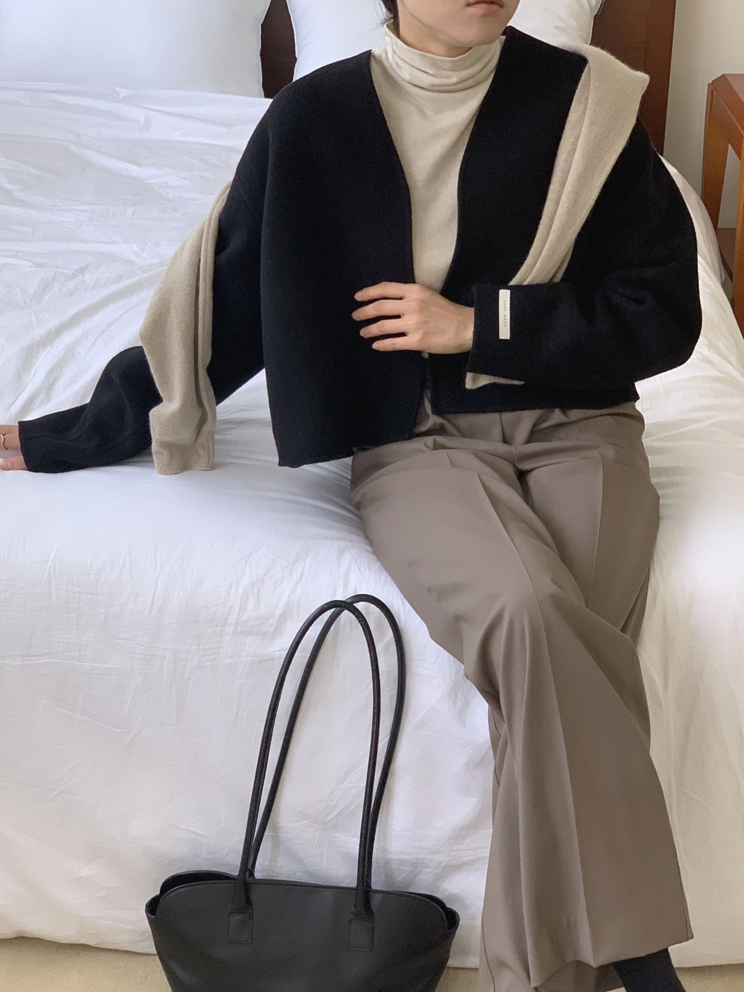 品名:디어핸드메이드 ◎※☞颜色:블랙, 오트밀 ◎※☞尺寸:FREE ◎※☞材质:尼龙 10%,羊毛 90% ◎※☞注意事项:只能干洗,只能手洗,不能手洗,机洗,不能使用漂白剂,不能烘干,不能熨烫,不能曲折 翻译