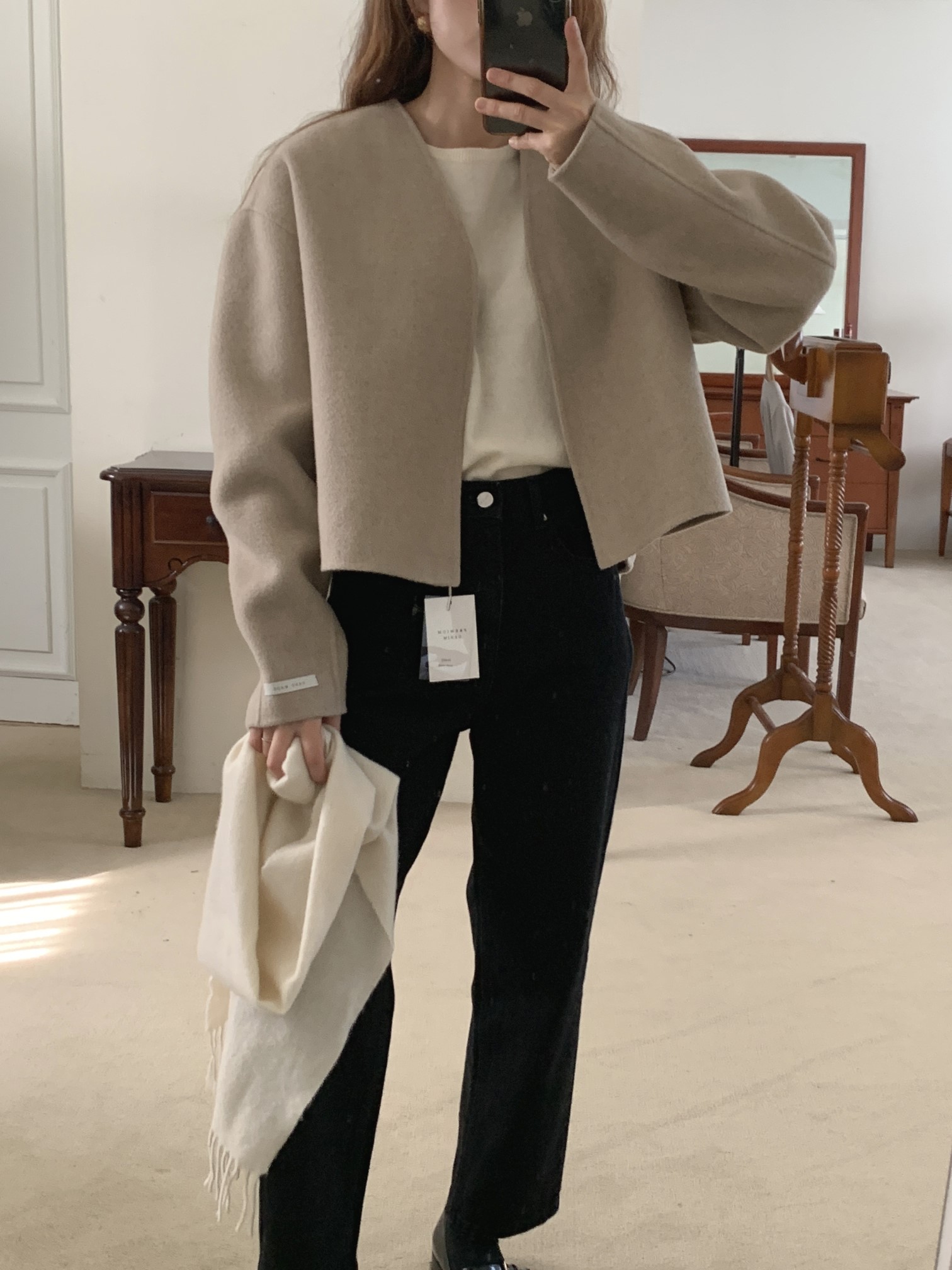品名:디어핸드메이드 ◎※☞颜色:블랙, 오트밀, 크림베이지 ◎※☞尺寸:FREE ◎※☞材质:尼龙 10%,羊毛 90% ◎※☞注意事项:只能干洗,只能手洗,不能手洗,机洗,不能使用漂白剂,不能烘干,不能熨烫,不能曲折