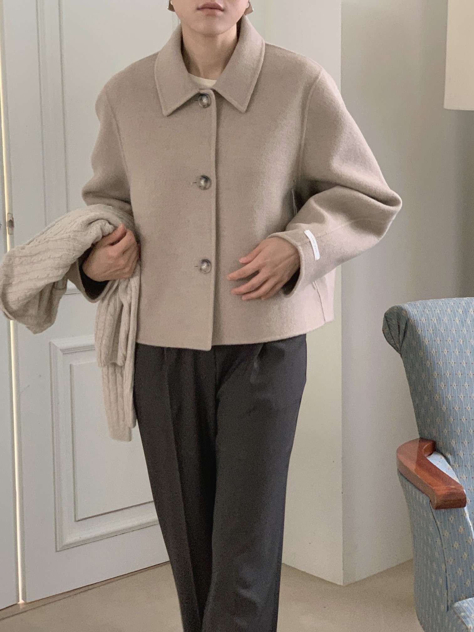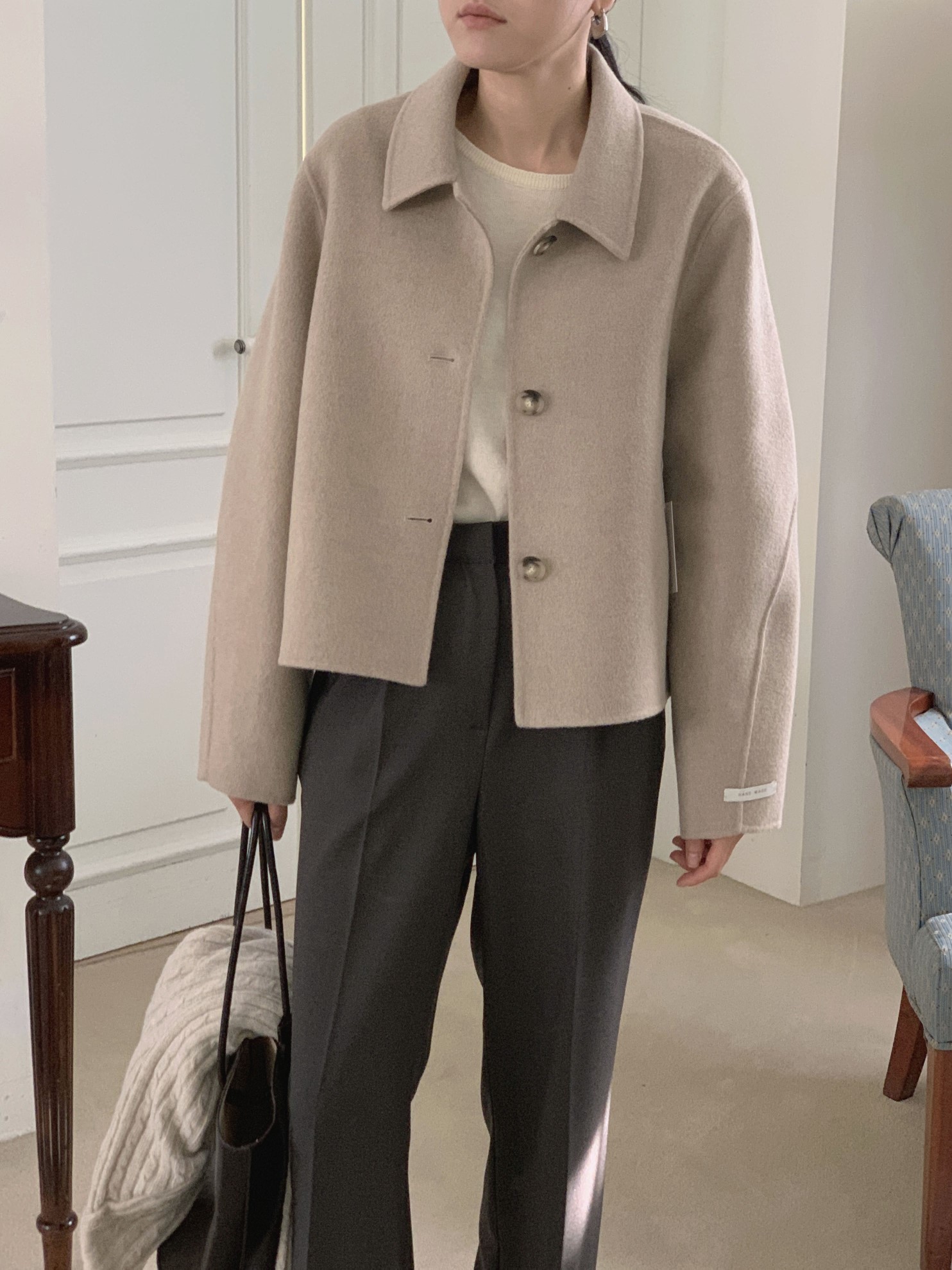 品名:모브숏핸드메이드 ◎※☞颜色:소라, 오트밀, 차콜, 카멜베이지 ◎※☞尺寸:FREE ◎※☞材质:尼龙 10%,羊毛 90% ◎※☞注意事项:只能干洗,只能手洗,不能手洗,机洗,不能使用漂白剂,不能烘干,不能熨烫,不能曲折