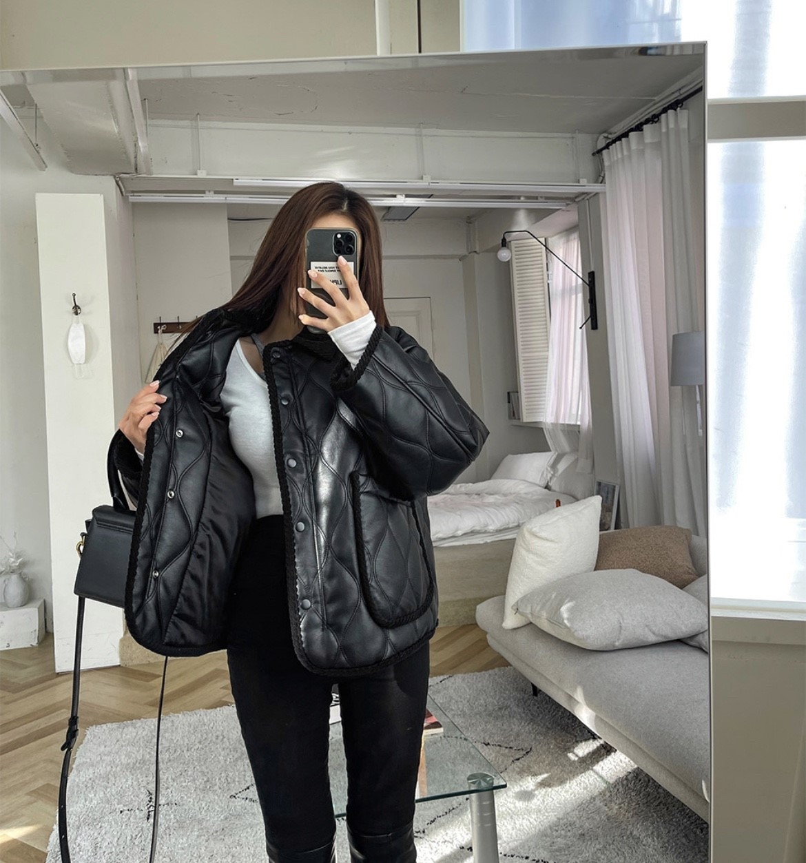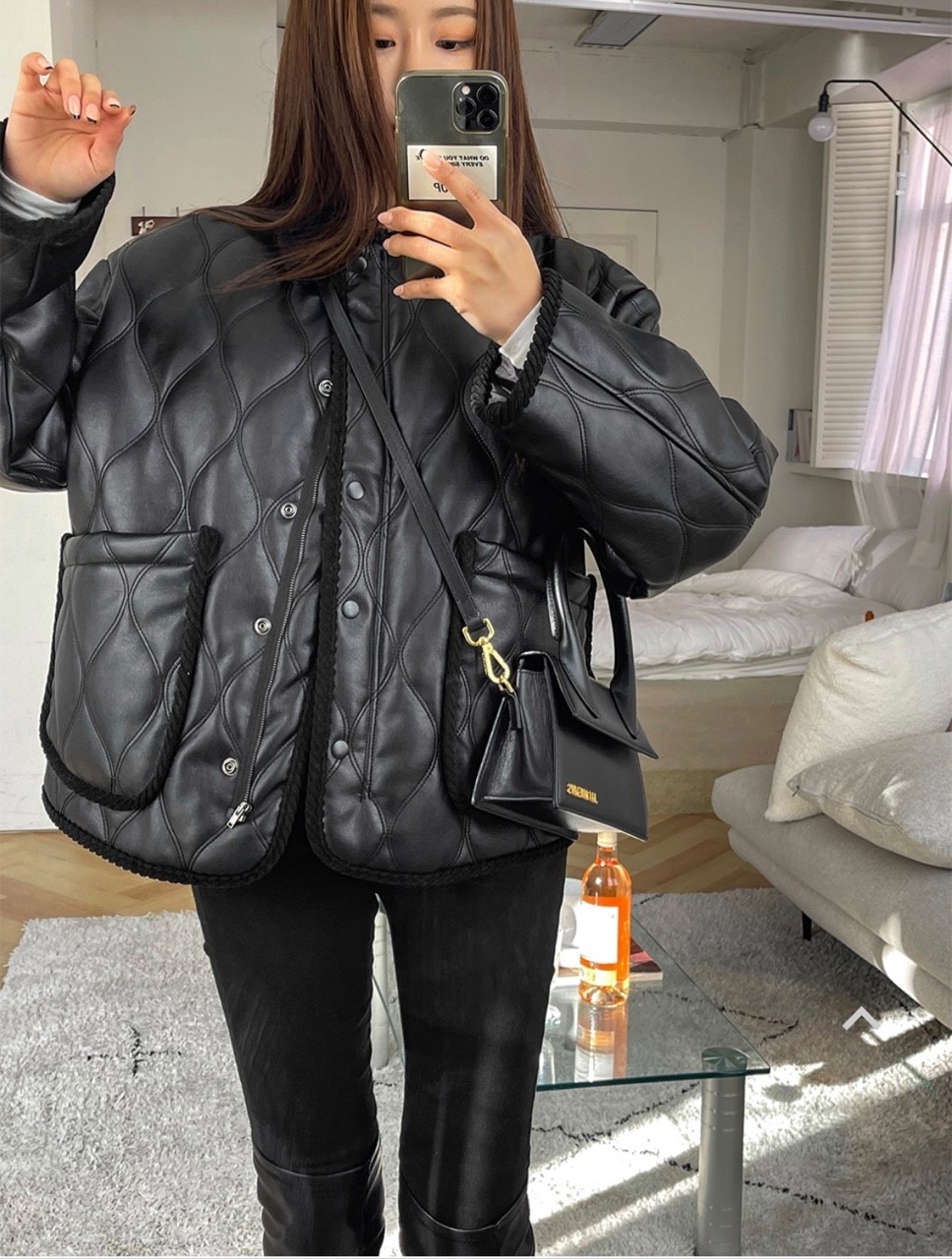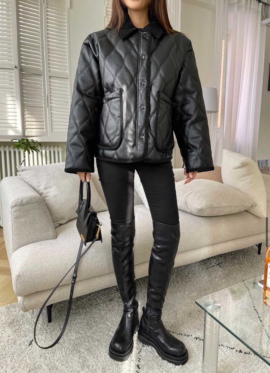 品名:O2) 宽松翻领绗缝夹棉外套 ◎※☞颜色:블랙 ◎※☞尺寸:FREE ◎※☞材质:聚氨酯 100% ◎※☞注意事项:只能干洗,只能手洗,不能手洗,机洗,不能使用漂白剂,不能烘干,不能熨烫,不能曲折 翻译