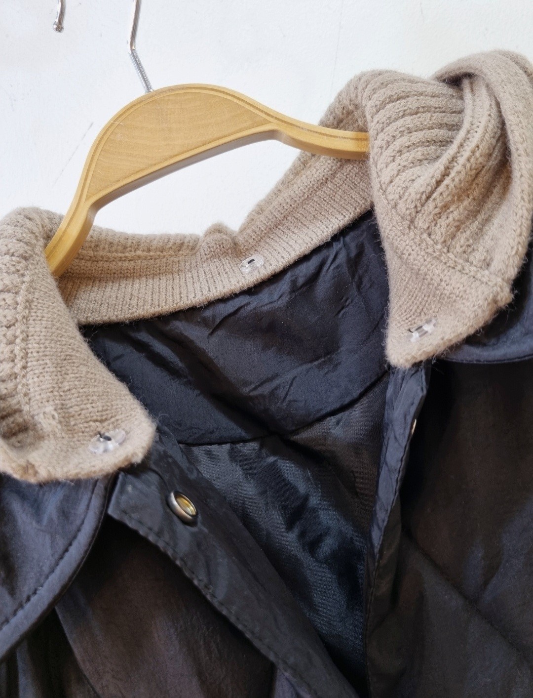 品名:니트후드 탈부착 패딩 ◎※☞颜色:블랙, 카멜 ◎※☞尺寸:FREE ◎※☞材质:尼龙 50%,聚酯 50% 翻译