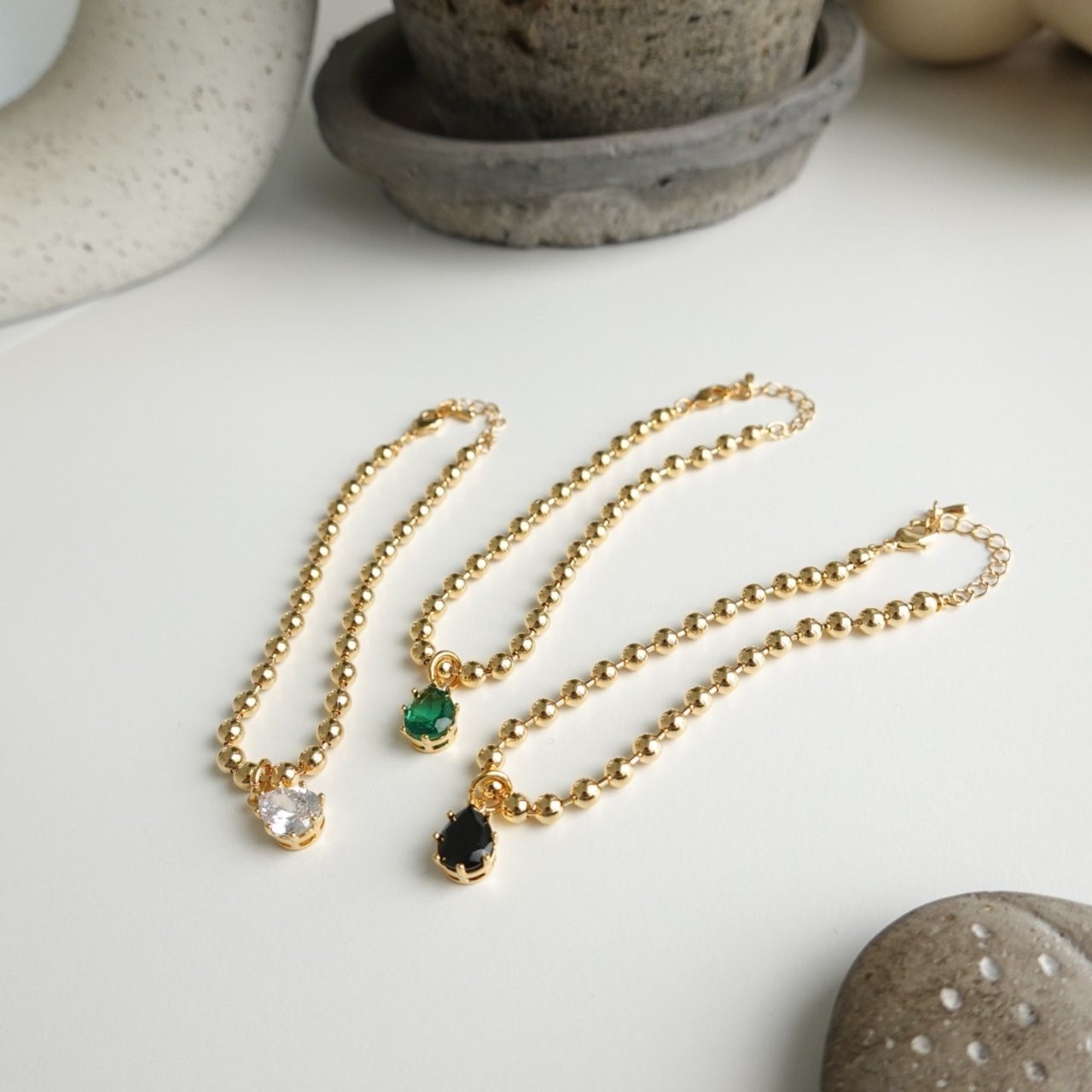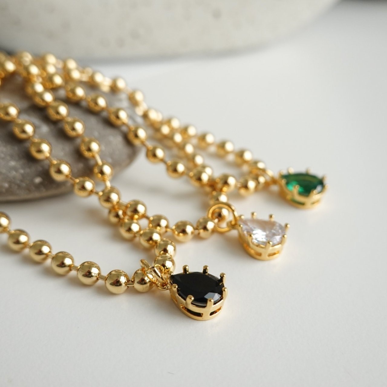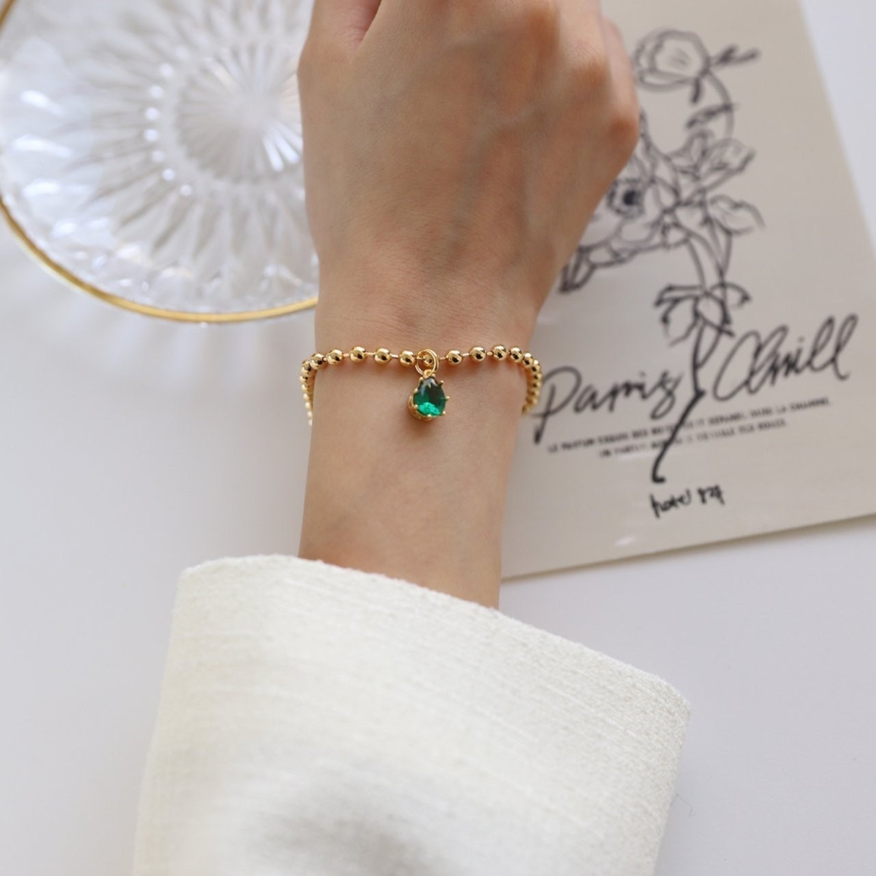 品名:B1124 지르코니아 볼 팔찌 (24k 골드도금) ◎※☞颜色:그린, 블랙, 화이트 ◎※☞尺寸:FREE ◎※☞材质:镀金 0% 翻译