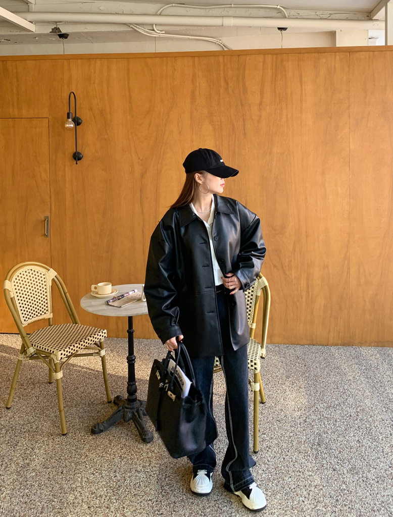 品名:#한두 레더사파리자켓 ◎※☞颜色:그레이, 블랙, 와인 ◎※☞尺寸:FREE ◎※☞材质:聚氨酯 100% 翻译