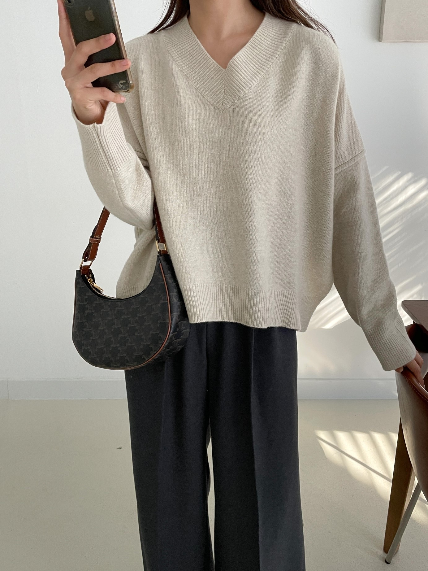 品名:캐시미어브이니트 #브이넥 #니트 ◎※☞颜色:먹색, 밤색, 베이지, 크림 ◎※☞尺寸:FREE ◎※☞材质:山羊绒 5%,尼龙 40%,파인울 55% 翻译