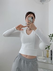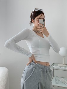 절개브이넥티셔츠