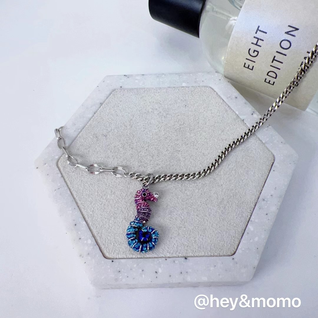 图款 ⚪️925 银 施华洛微镶彩钻可爱小海马项链 25000