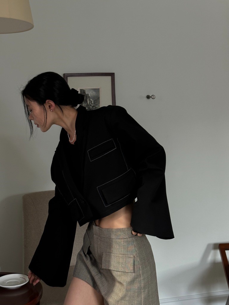 品名:시크크롭JK #크롭자켓 #스티치자켓 #크롭 #봄자켓 #봄신상 #스트릿 ◎※☞颜色:그레이, 블랙 ◎※☞尺寸:FREE ◎※☞材质:폴리 95%,스판 5% ◎※☞注意事项:只能干洗,只能手洗,不能手洗,机洗,不能使用漂白剂,不能烘干,不能熨烫,不能曲折