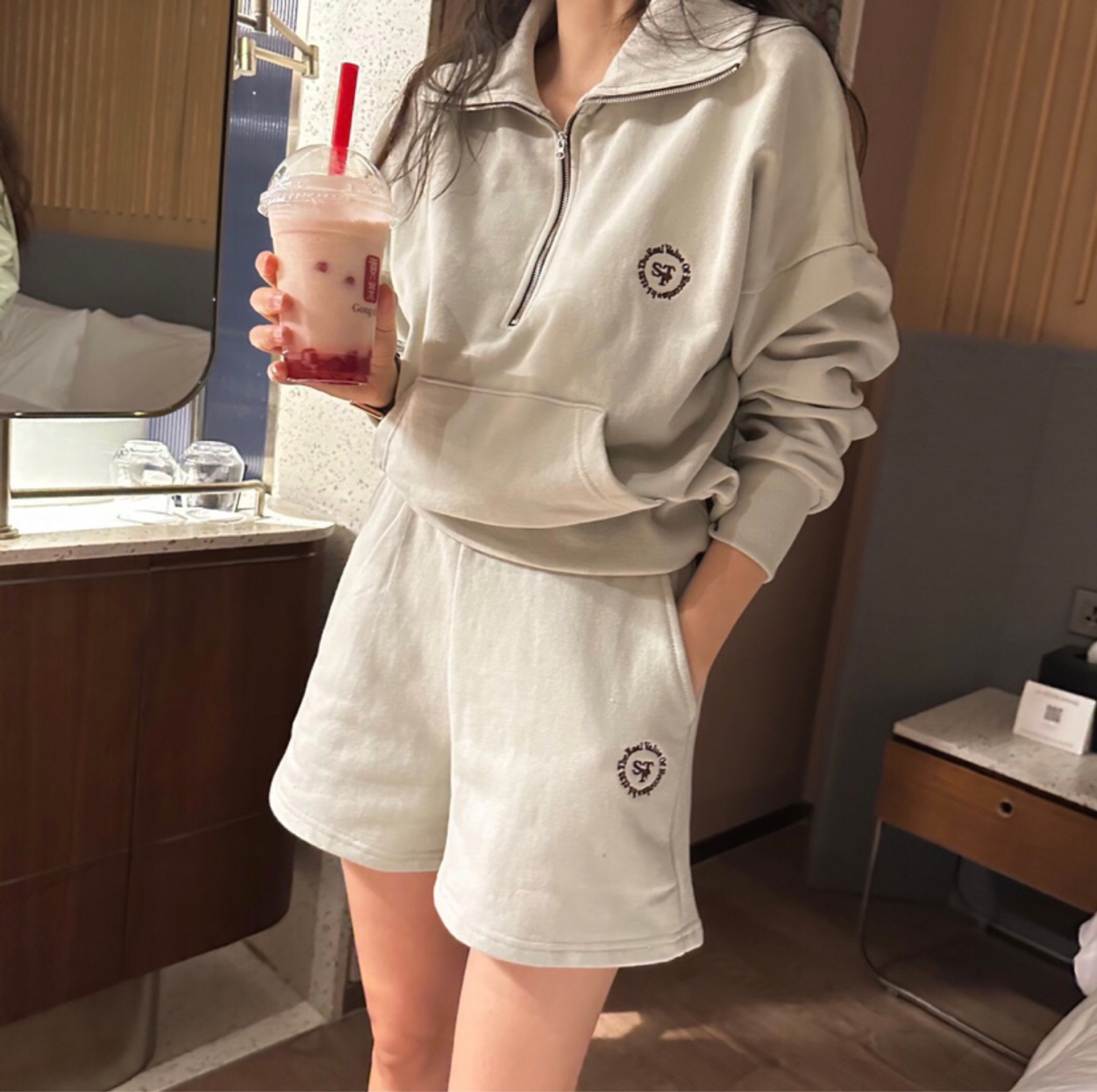 하프집업반바지세트