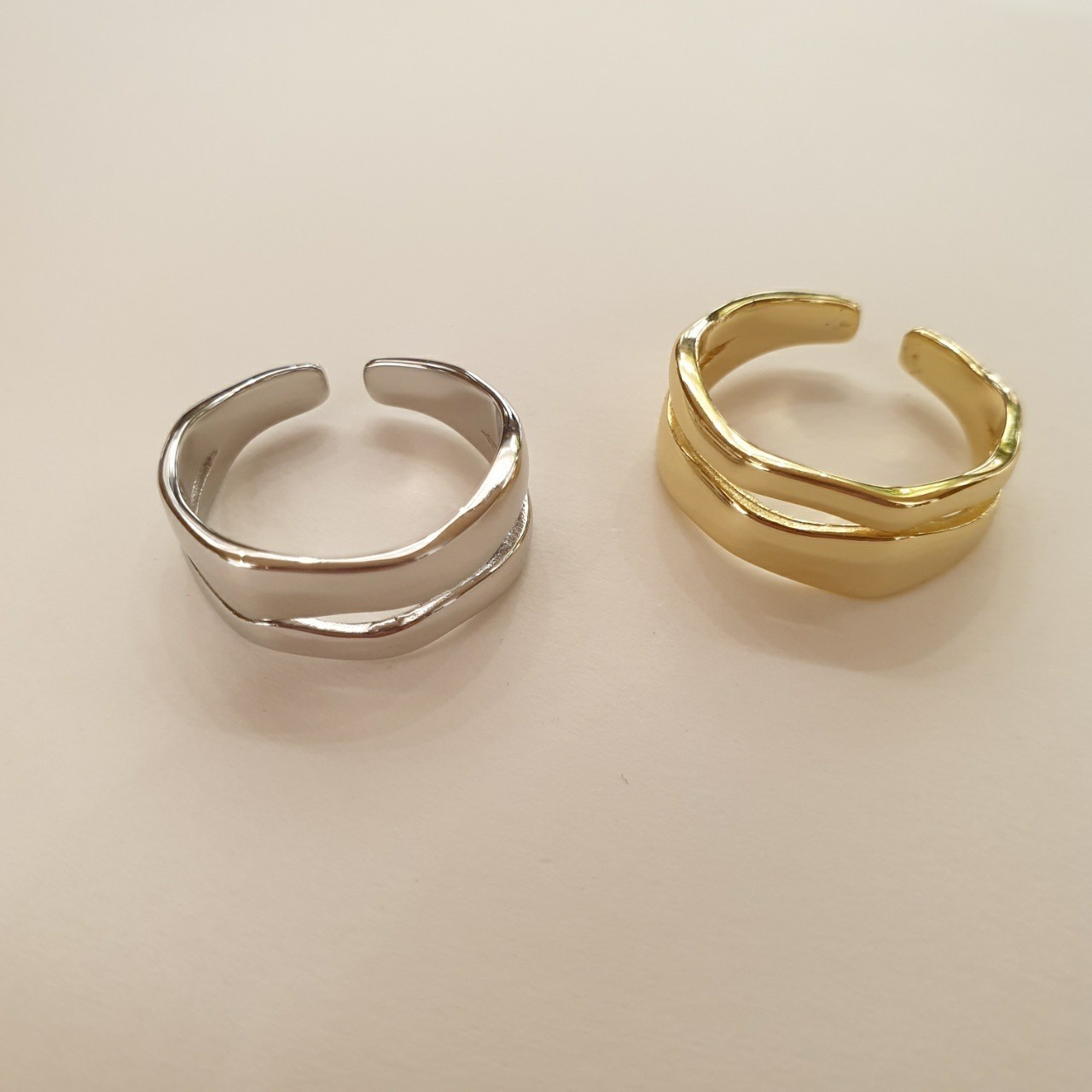 品名:은제품--- 오픈 두줄트임반지 ◎※☞颜色:골드, 실버 ◎※☞尺寸:FREE ◎※☞材质:银 0% 翻译