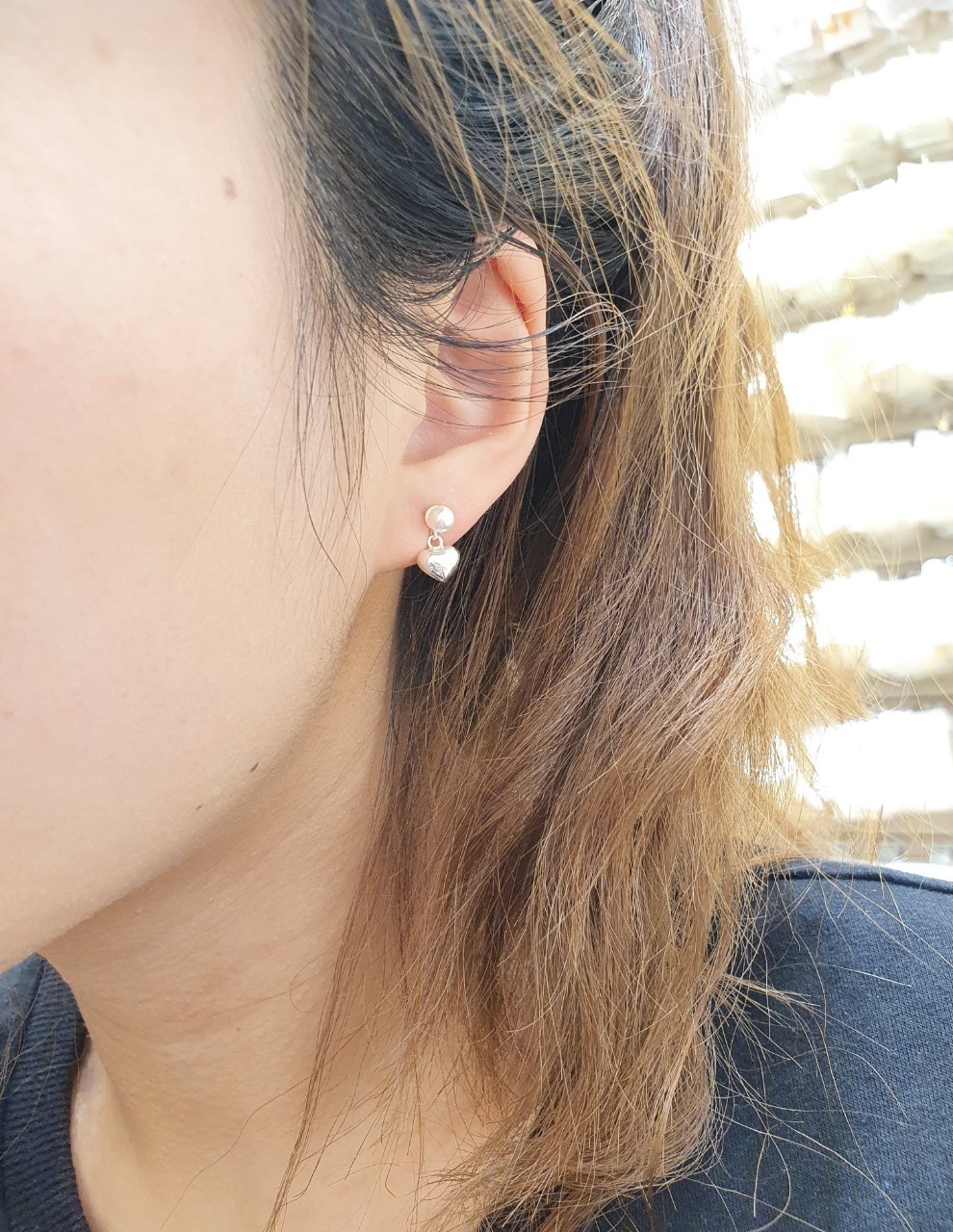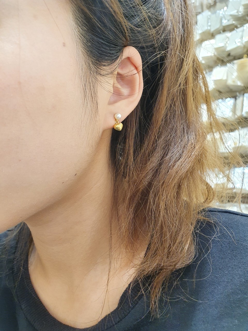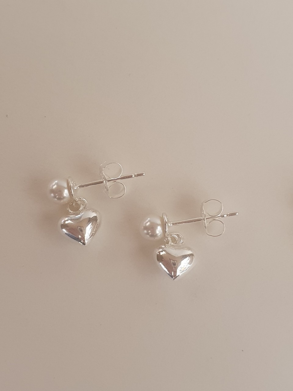 品名:은제품---한개진주 하트 연결귀걸이
